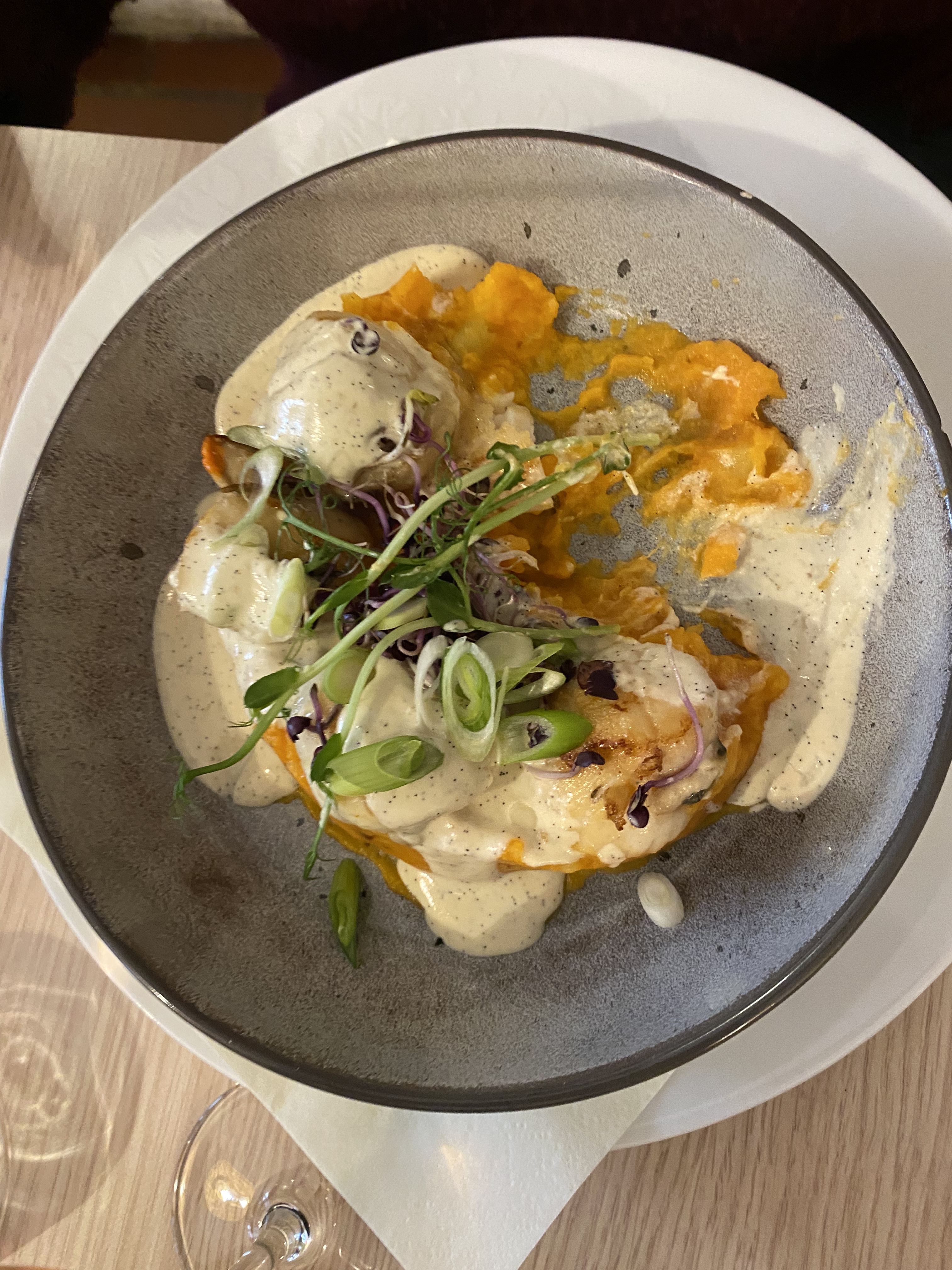 Plus qu'un Plan B! C'est un vrai régal pour les yeux et pour les papilles. Des Saint-Jacques sur un chou farcit au foie gras avec des champignons : une superbe découverte! Merci au chef et à son équipe pour ce superbe moment.