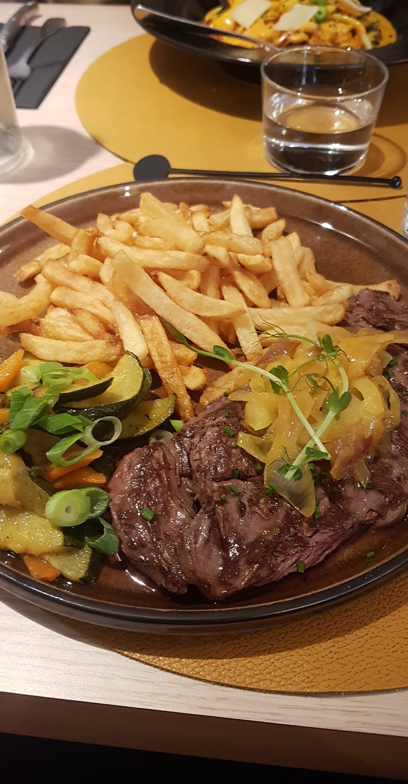 Service impeccable et rapide et cuisine très goûteuse . Joue de porc et entrecôte excellentissime. Nous reviendrons.