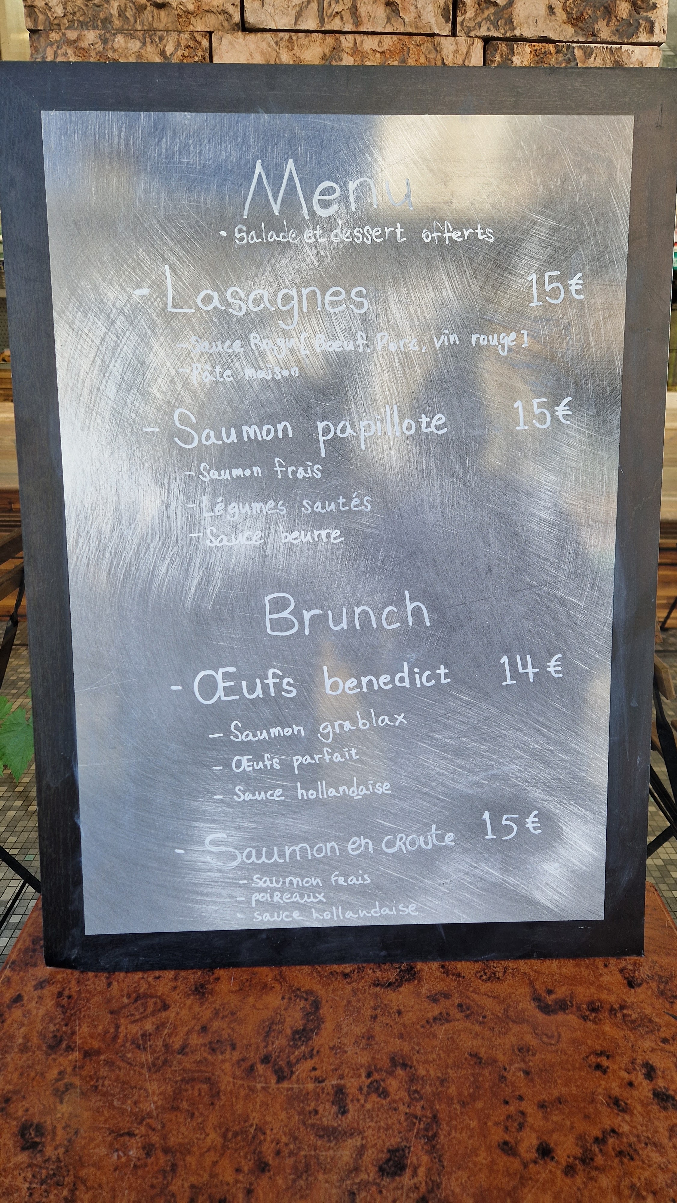Œufs Bénédicte cuits à la perfection, lasagnes moelleuses et goutues, ma fille et moi avons vraiment apprécié notre déjeuner. Un service attentionné et en prime (offert par la maison) un banana bread bien parfumé au rhum. Le duo aux manettes de cet établissement peut se détendre et être fier : ils nous régalent !