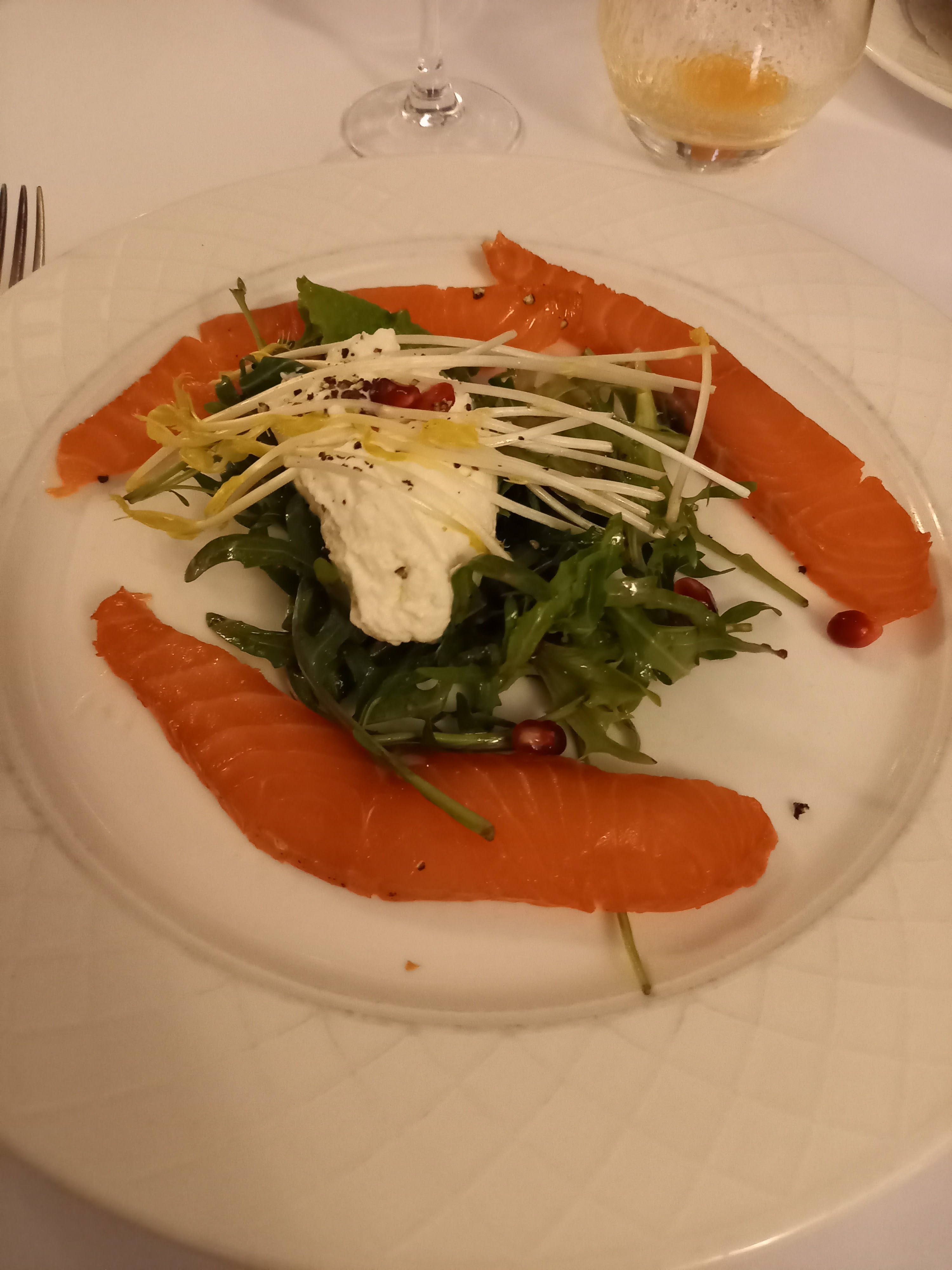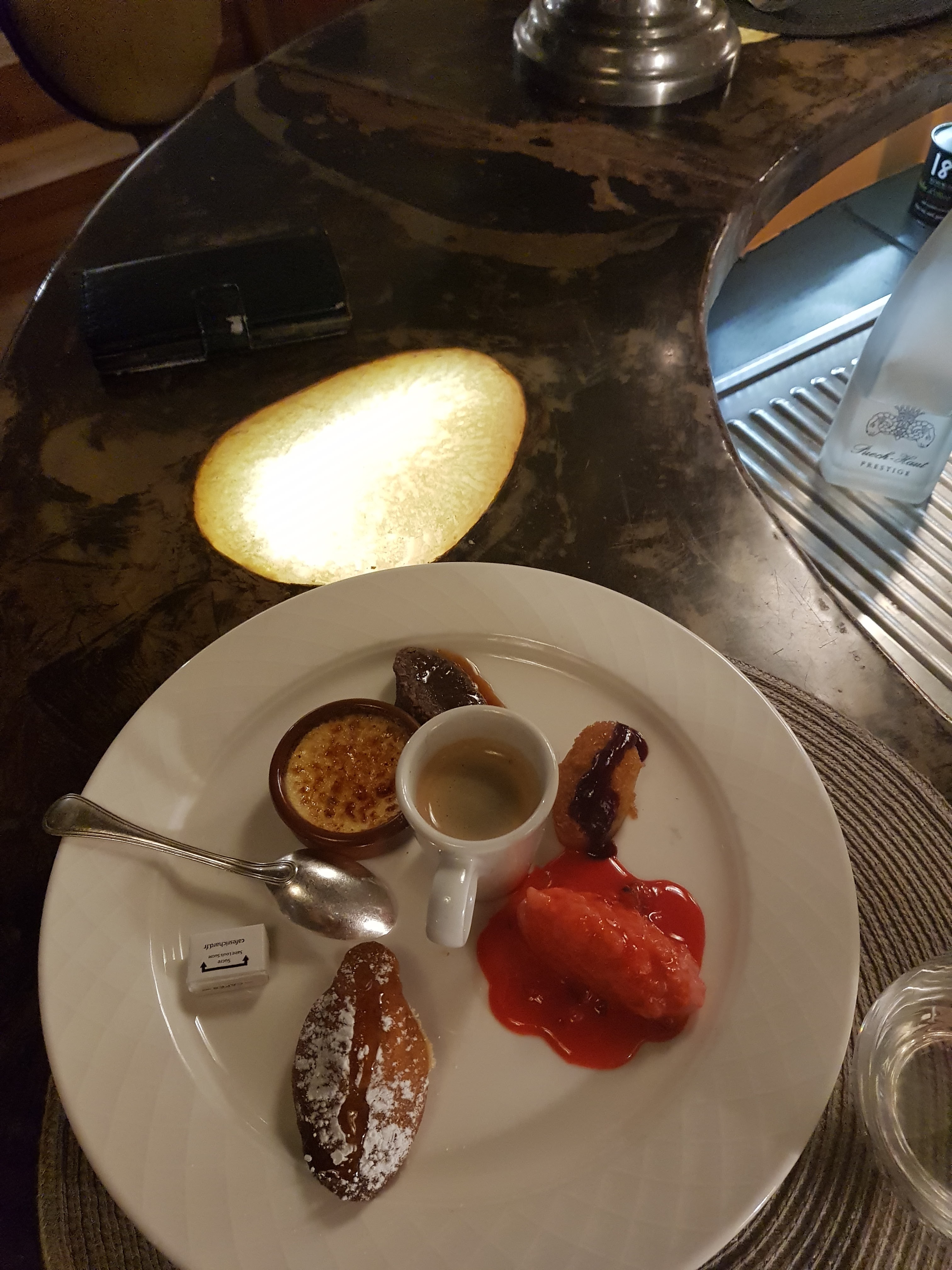 Il y avait l'art dans l'assiette mais pas la manière dans l'attitude de la personne qui nous a accueilli et servi, pas du tout chaleureuse!!. Merci au chef pour sa créativité et à son équipe en cuisine! Service du plat chaud alors que nous n'étions même pas à table, demande de notre choix de dessert dans l'allée du restaurant après une petite pause dehors sans même attendre que nous soyons installés à table pour prendre notre commande!!!. 5 verres vides bouteille de rouge vide c'est nous qui avons du nous manifester pour avoir de nouveau à boire alors que qu'il n'y avait quasiment pas de clients dans le restaurant!!. Le service compte autant que la qualité des assiettes vraiment dommage pour une soirée d'anniversaire avec le plaisir de pouvoir s'offrir un restaurant toque blanche!!
