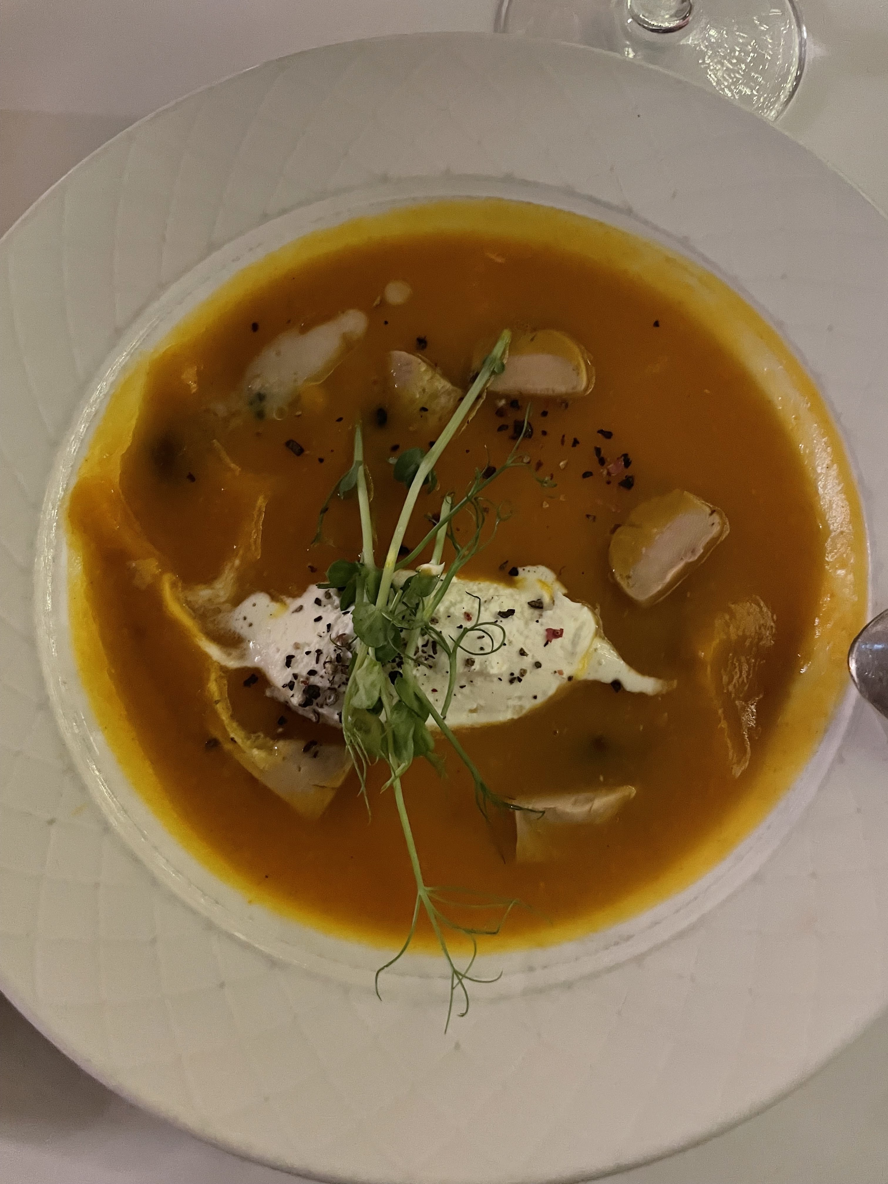 Menu très accessible au vu de la qualité. De l entrée au dessert un régal. Plusieurs plat avec un foie gras délicieux sous toutes ses formes. Jolie cadre et personnel accueillant et souriant même sois leur masques. Je recommande vivement