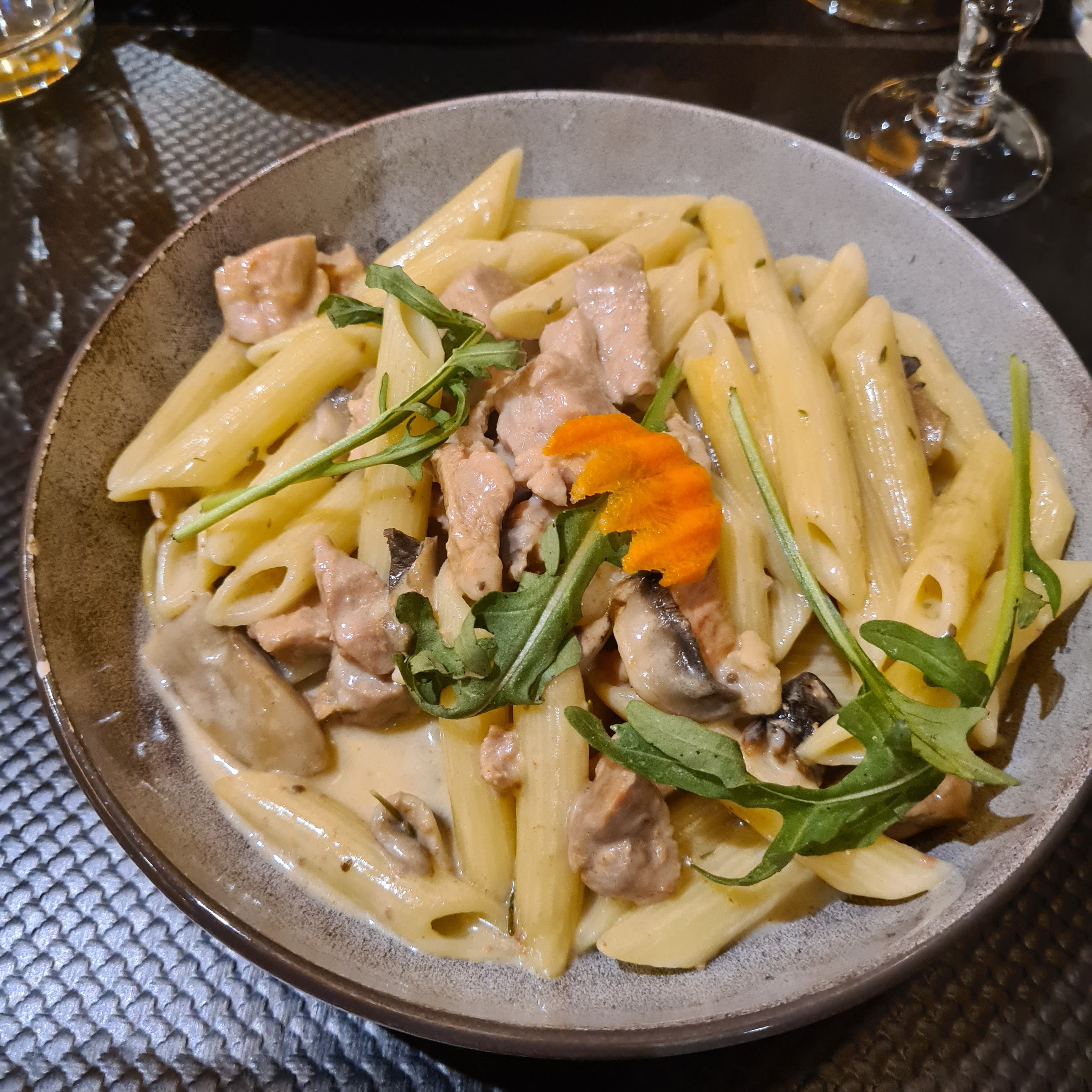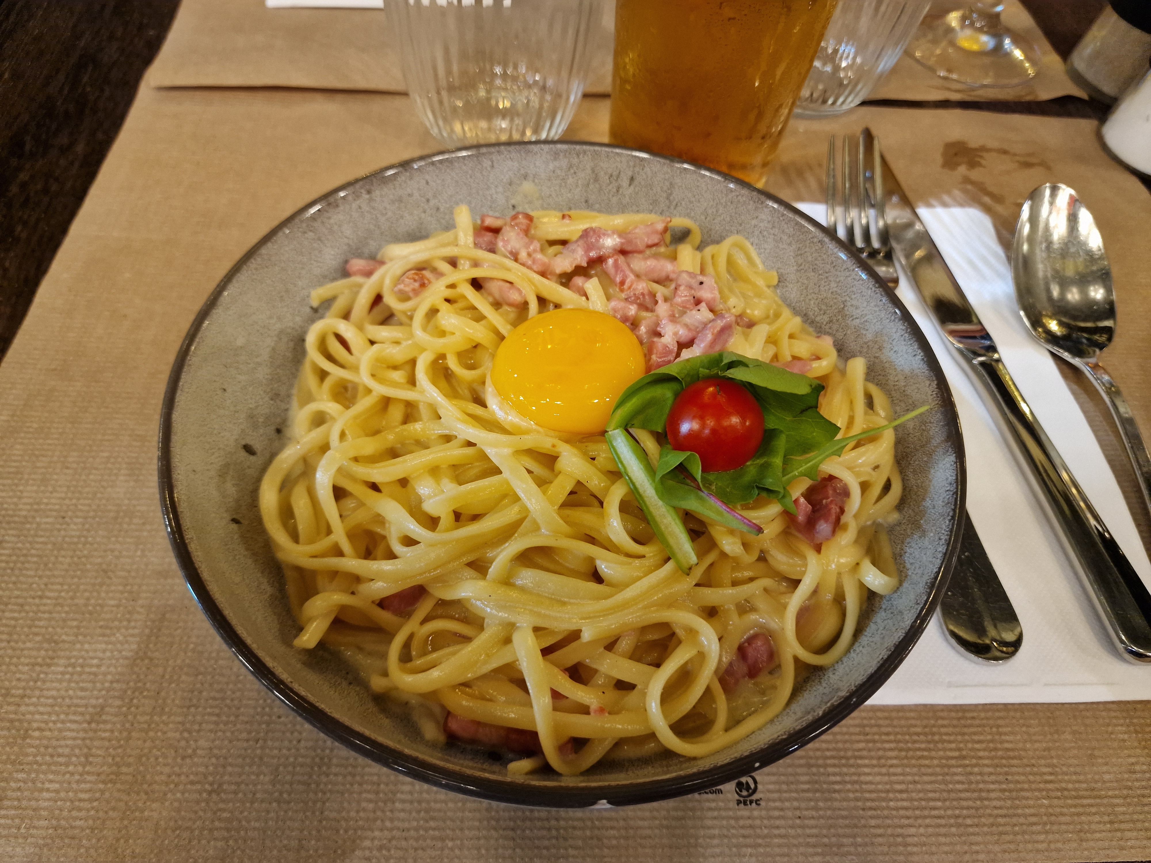 Très bonnes pâtes... Il me semble que d après mes connaissances la cuisine et authentiquement italienne. Je recommande aussi l escalope saltimboca.... Parfaite. Servie avec des pâtes. Les serveurs aux petits soins... Très chaleureux et accueillant.