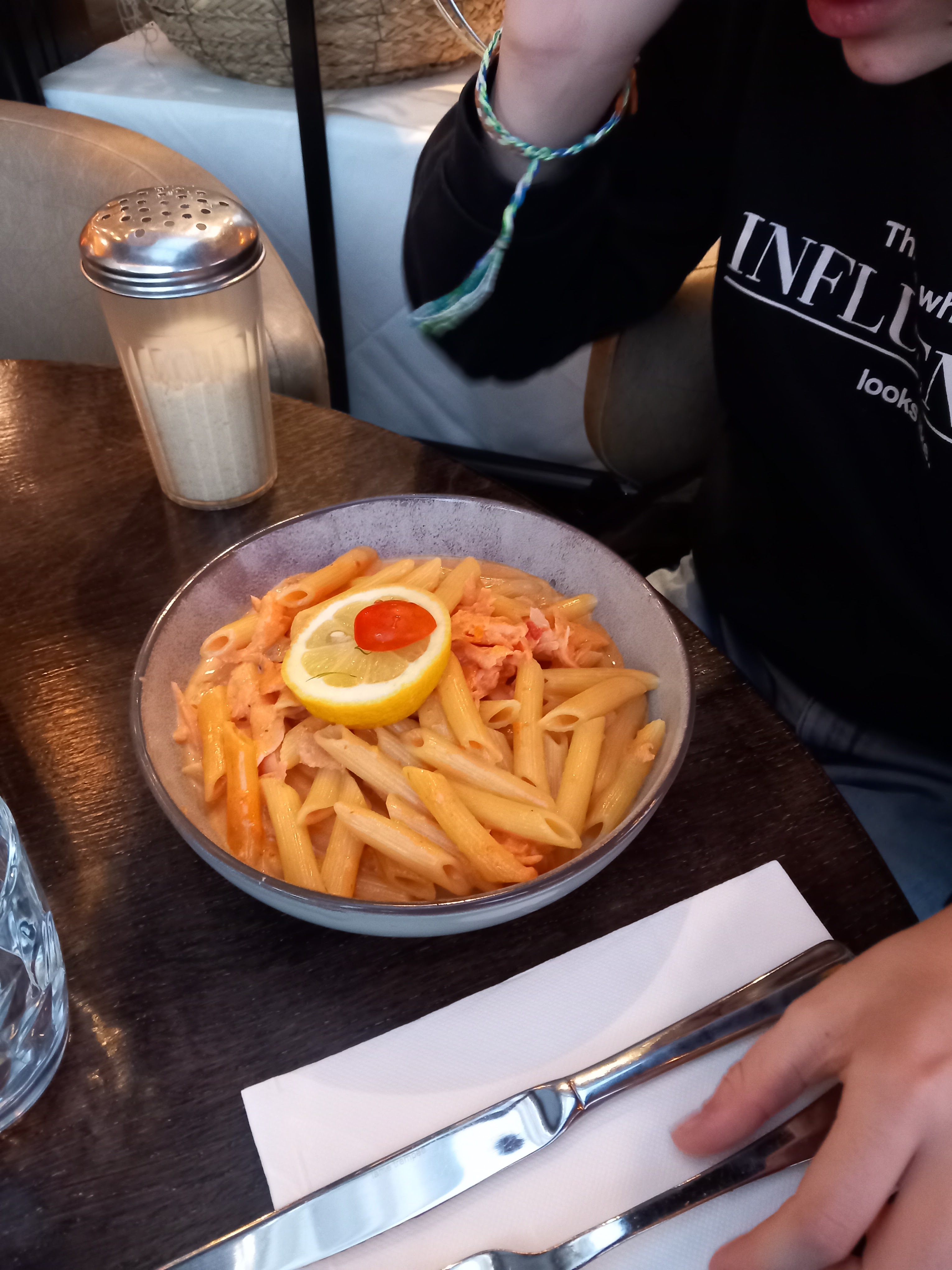 Restaurant très propre et lumineux. Personnel très accueillant et chaleureux avec de l'humour. Les plats de pâtes sont excellents . Ils ont une tarte au citron excellente avec une superbe decoration dans l'assiette. Le cappuccino était délicieux. J'y retournerais avec plaisir.