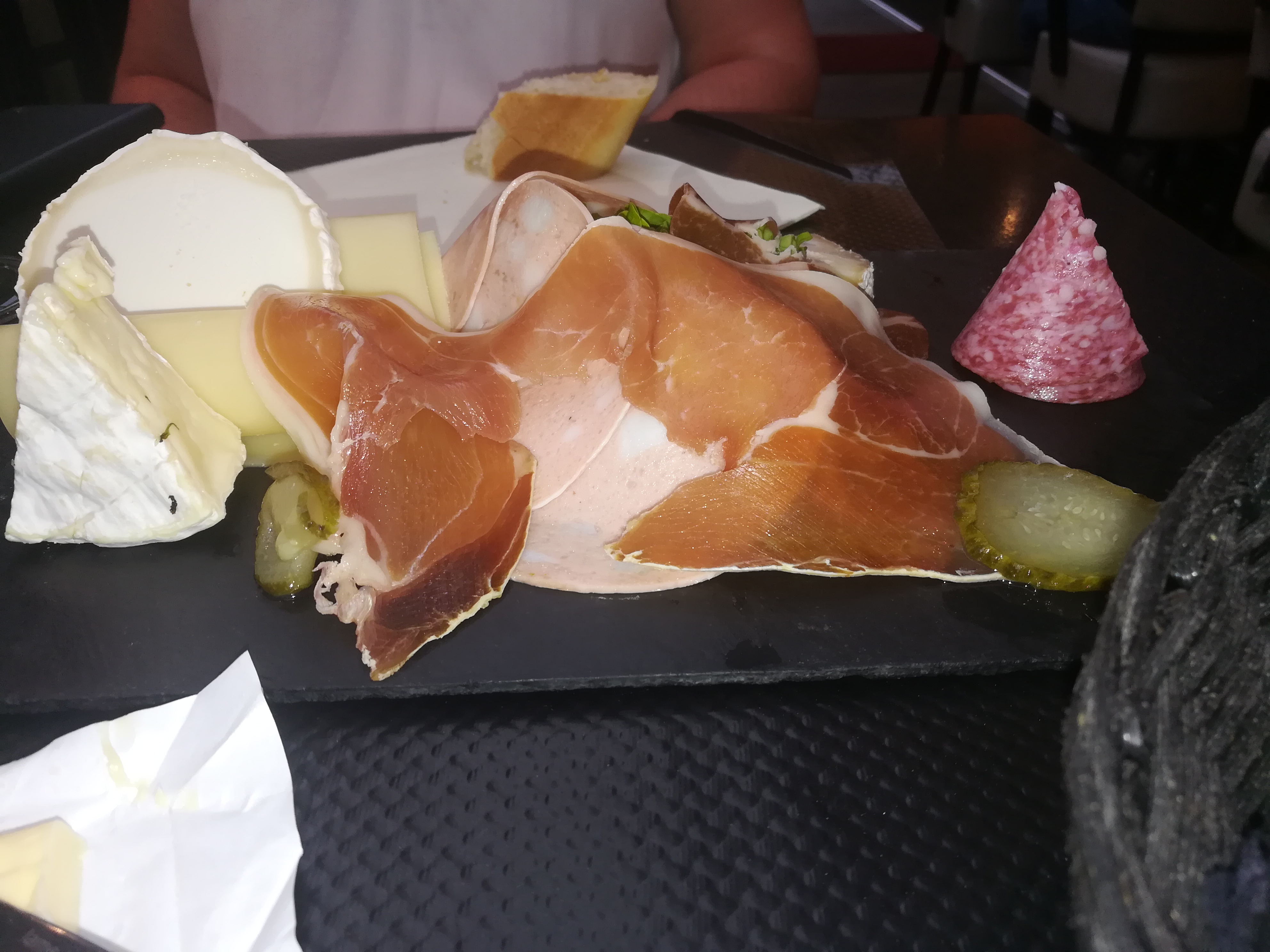 Nous avons été déçu par la qualité du repas. Nous avons commandé 2 menus à 22 euros. Mauvais rapport qualité/prix Entrée : assiette de charcuterie assez fade et salade non assaisonnée Tomate Moza appréciable même si servi en petite quantité Un pavé de rumsteak, la cuisson n'a pas été respecté et la viande était incroyablement élastique et frites surgelés de qualité très moyenne sauce béarnaise et poivre industrielle) Un second pavé de rumsteak, la cuisson n'a toujours pas été respecté mais mon ami a eu plus de chance que moi car la viande était beaucoup moins élastique que la mienne, pareil haricots verts surgelé de qualité moyenne. Nous avons demandé de remplacer notre dessert par un café cela nous a été refusé car la machine à encaisser le l'accepte pas. Ils sont aussi avare sur le pain à chaque fois servi par portion de 3 (nous étions deux) c'est ennuyeux de réclamer à chaque fois du pain. Bref vraiment déçu de la qualité de la nourriture. J'au mieux fait de commander une pizza je pense que j'aurai mieux manger. Bonne continuation tout de même