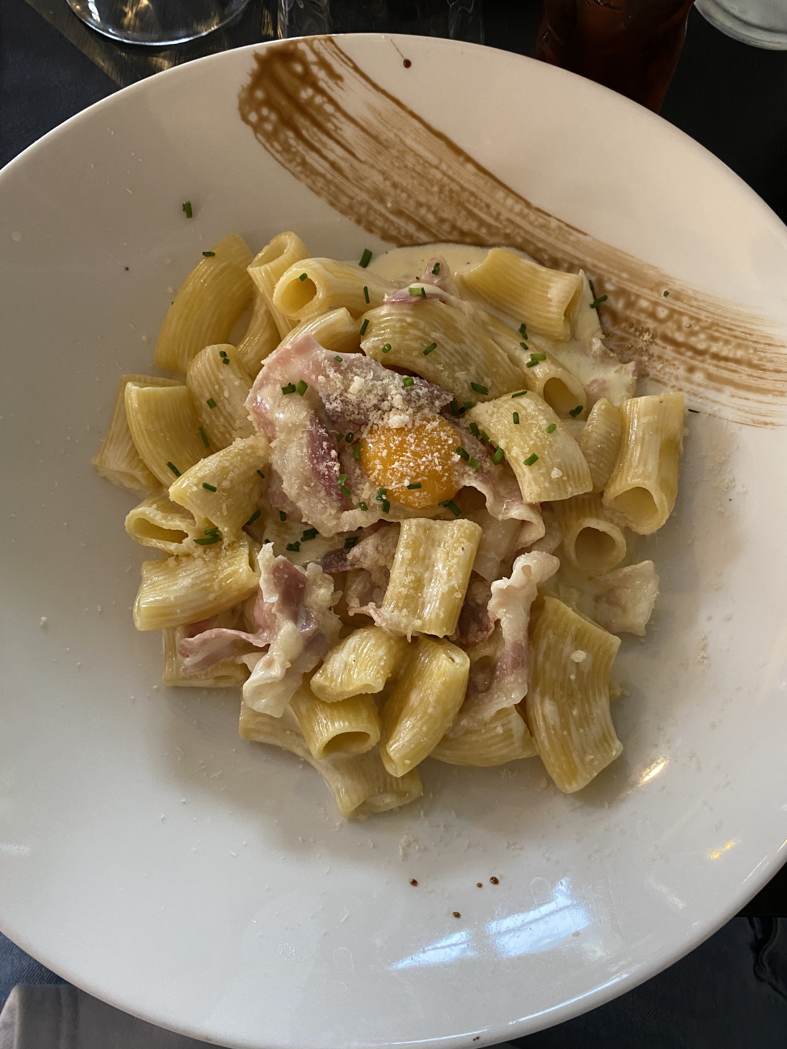Très bon restaurant et très sympathique. L'endroit est calme, spacieux et la cuisine est délicieuse. L'accueil est tout aussi charmante. J'ai mangé un plat de pâtes à la carbonara qui était succulent mais il n'y en avait pas assez à mon goût. Je ne suis pas une grosse mangeuse mais j'ai vraiment trouvé l'assiette bien vide, j'ai même mangé deux morceaux de pains de peur d'avoir faim par la suite... Puis j'ai pris un tiramisu, mon dessert préféré au café alors que je n'aime pas le café de base toujours aussi bon 😁