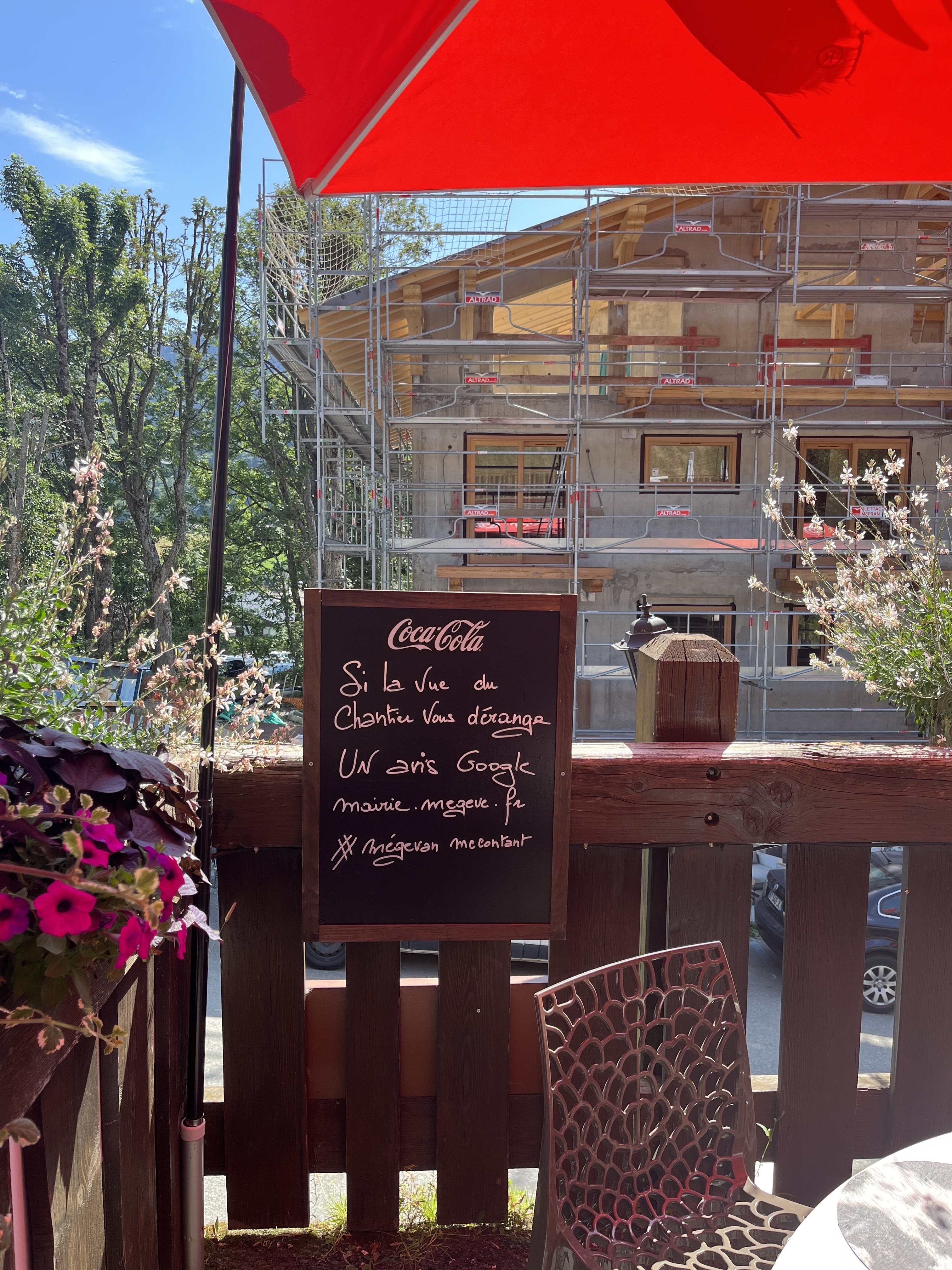 Très sympa ,ce café est rempli de touches personnelles , grande terrasse avec plantes aromatiques et salades cultivées en grand pot mis à l' extérieur , petite niche pour oiseau ...le simple café expresso est excellent .... Belle vue sur les montagnes ,il se trouve sous les oeufs montant vers le Jaillet voici une photo de ce petit coin de verdure , sympa non ?