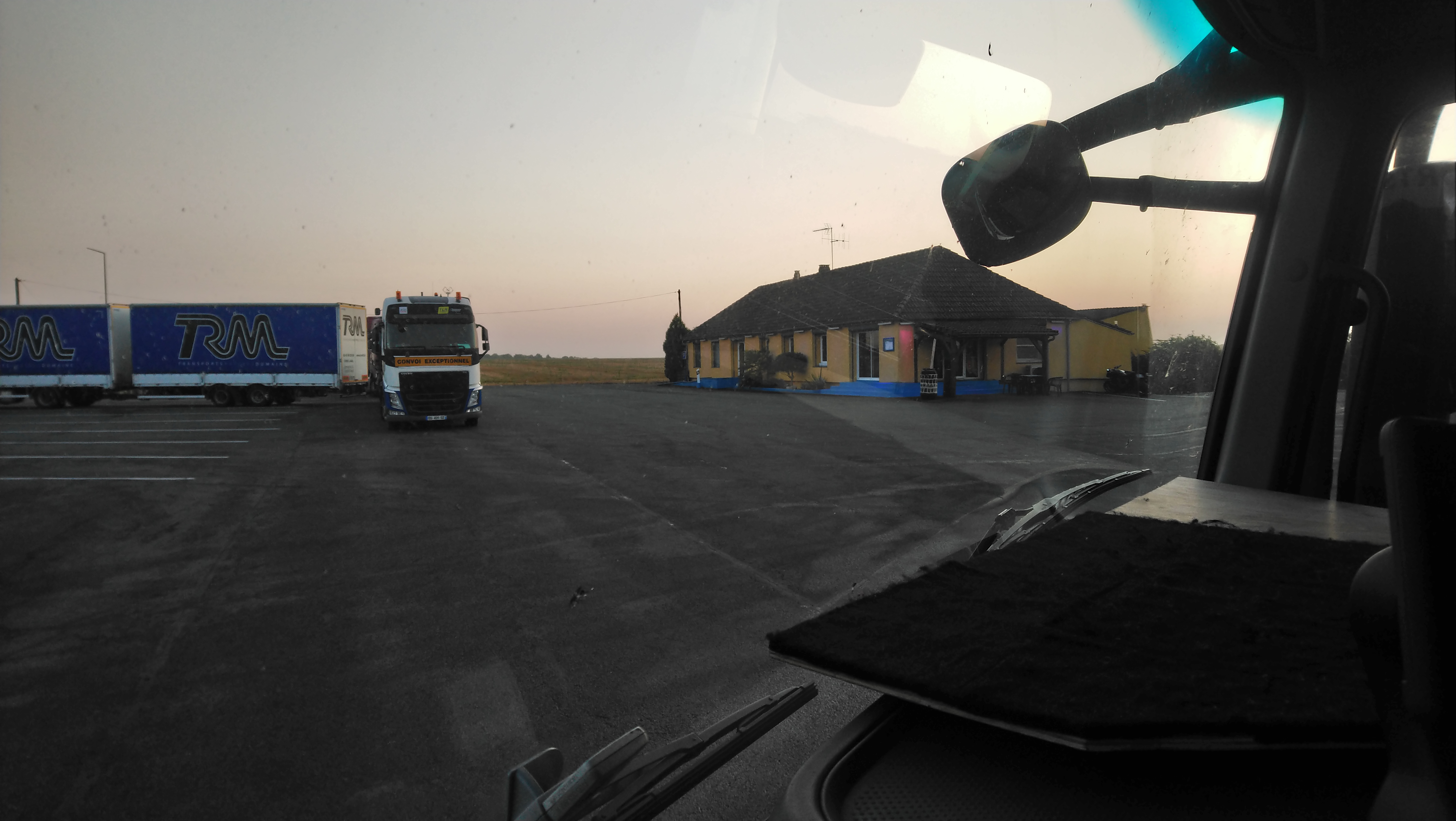 En moto, je voulais pouvoir garder un œil sur ma monture. Ici c'est super, un très grand parking au milieu des champs, quand j'ai vu des camions arrêtés ... Les routiers connaissent les bonnes adresses.
