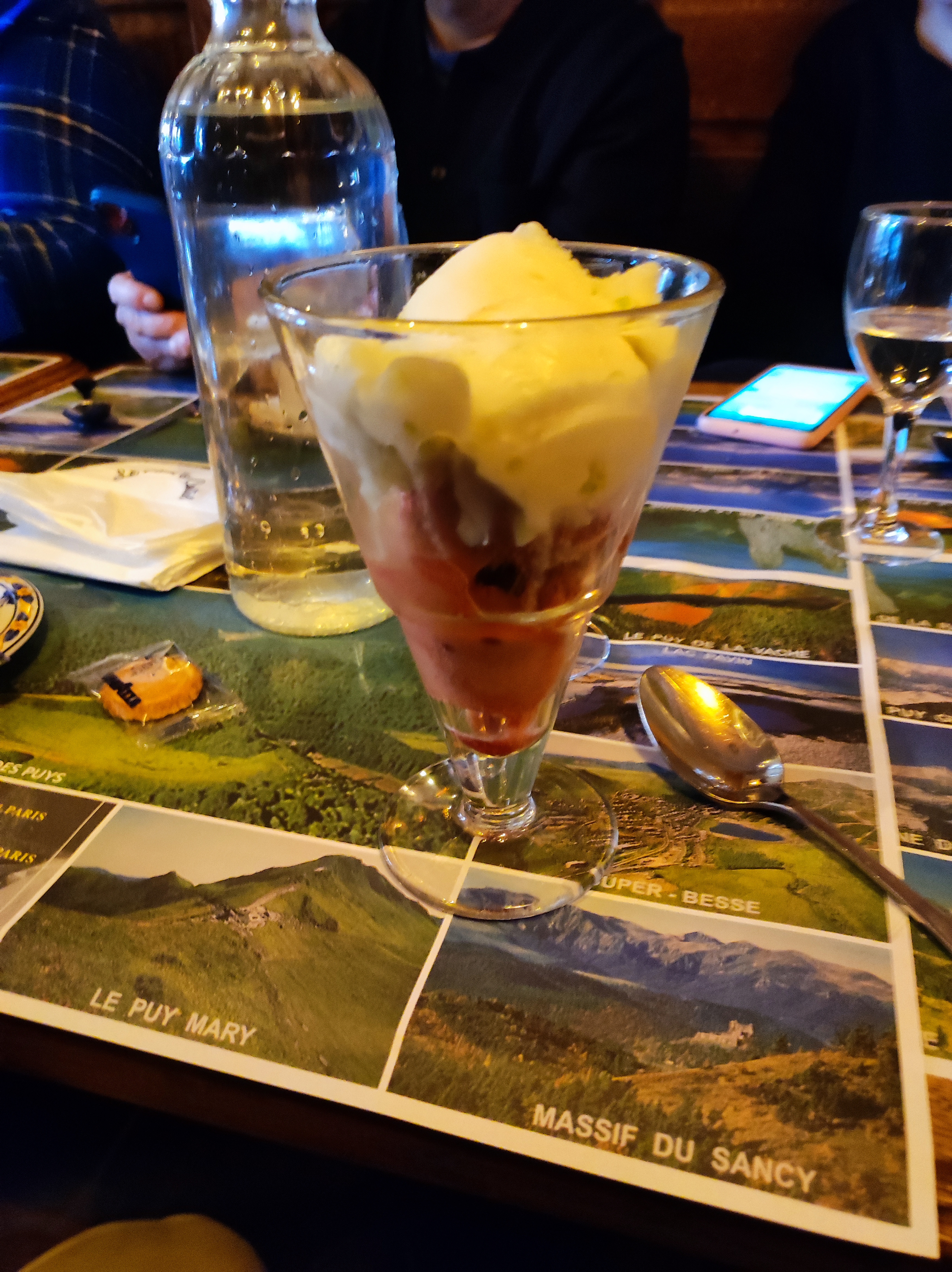 Les serveurs font un excellent travail, Ils gèrent la situation en sous-effectif. Pour le reste, je ne vois pas le lien entre la salsa et le Cantal. J'ai trouvé la truffade assez fade. Quant au dessert, je trouve ça un peu facile de mettre quelques châtaignes sur une crème caramel banale pour lui donner une couleur locale. Donc je suis globalement déçu.