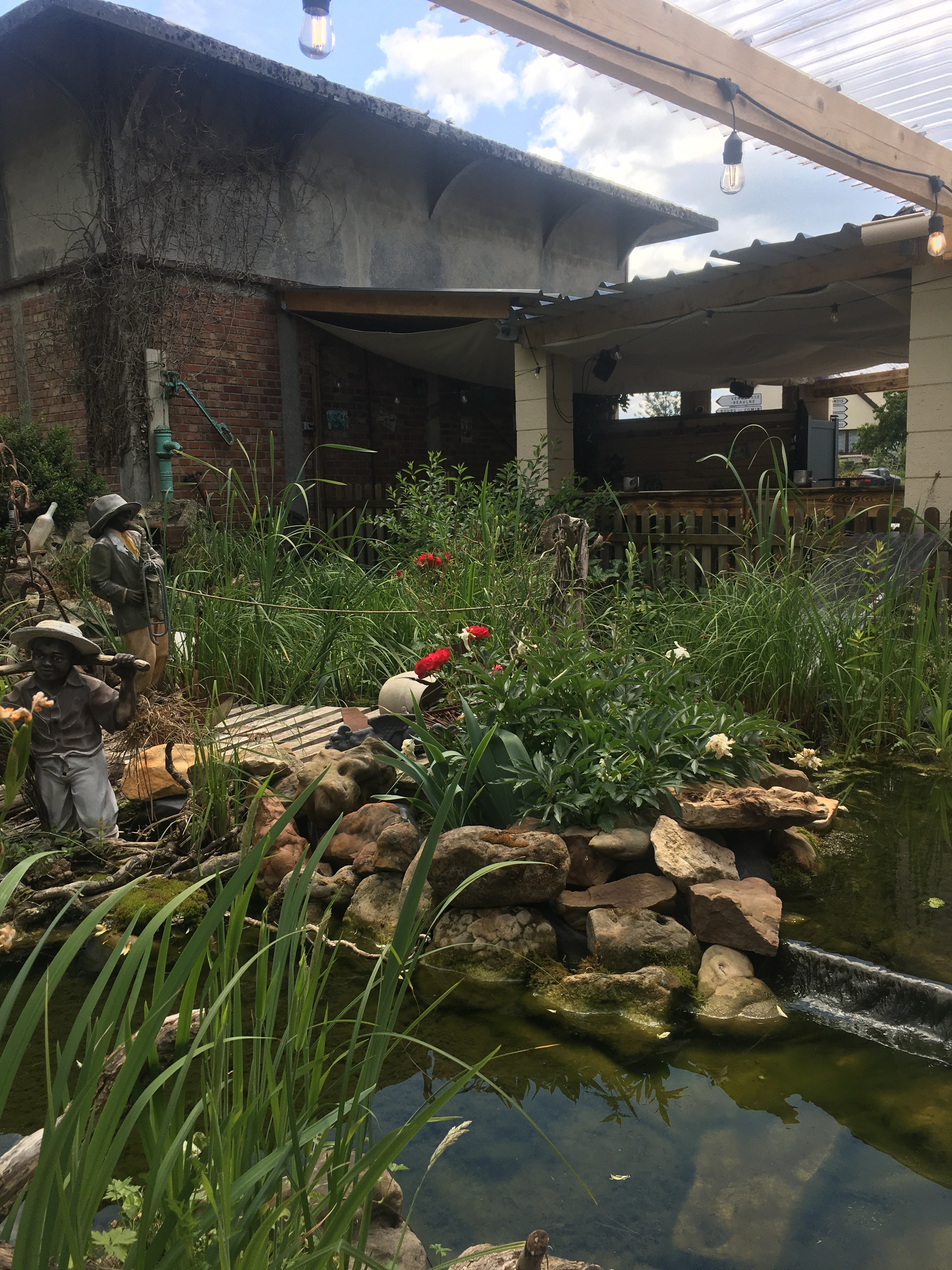 Des patrons vraiment sympas même avec des non-motards ! Une excellente idée, les salades à composer à notre goût pendant la canicule. Un cadre vraiment très beau, chouette bassin à poissons créé entièrement par le patron... chapeau !