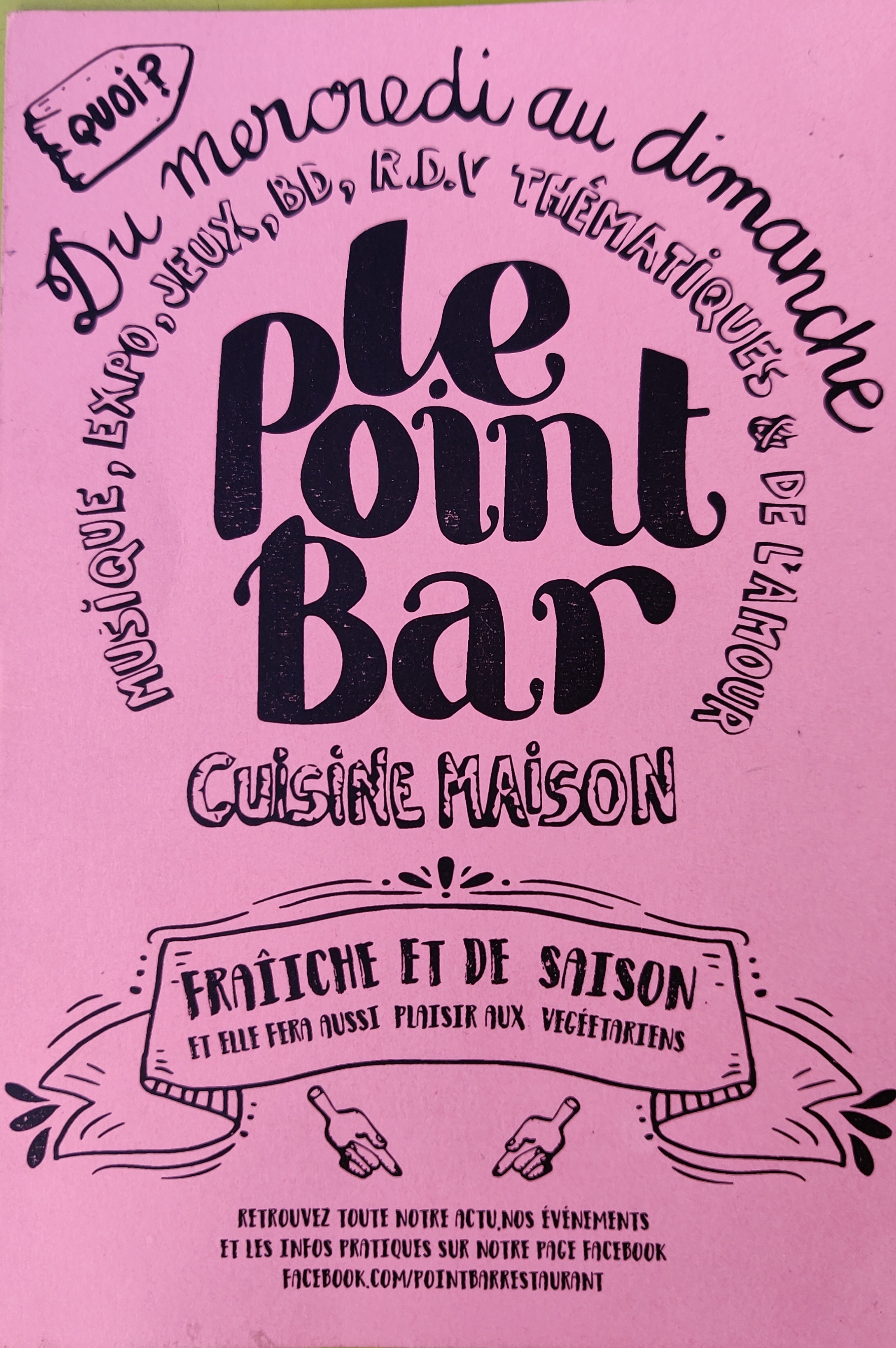 Le point bar c'est de la cuisine maison, de bonnes boissons et un super accueil, à découvrir!