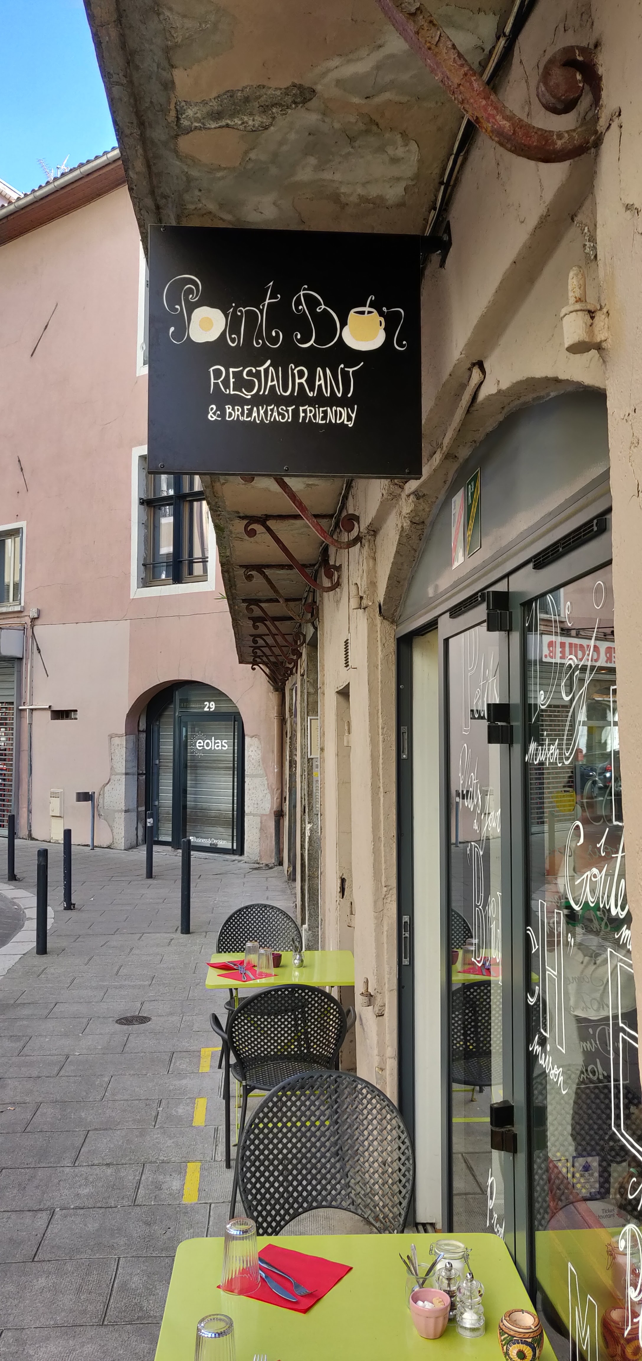 Le point bar, très bonne cuisine, personnels sympathiques , brunch copieux, en conclusion très bon moment passé en ce lieu convivial !
