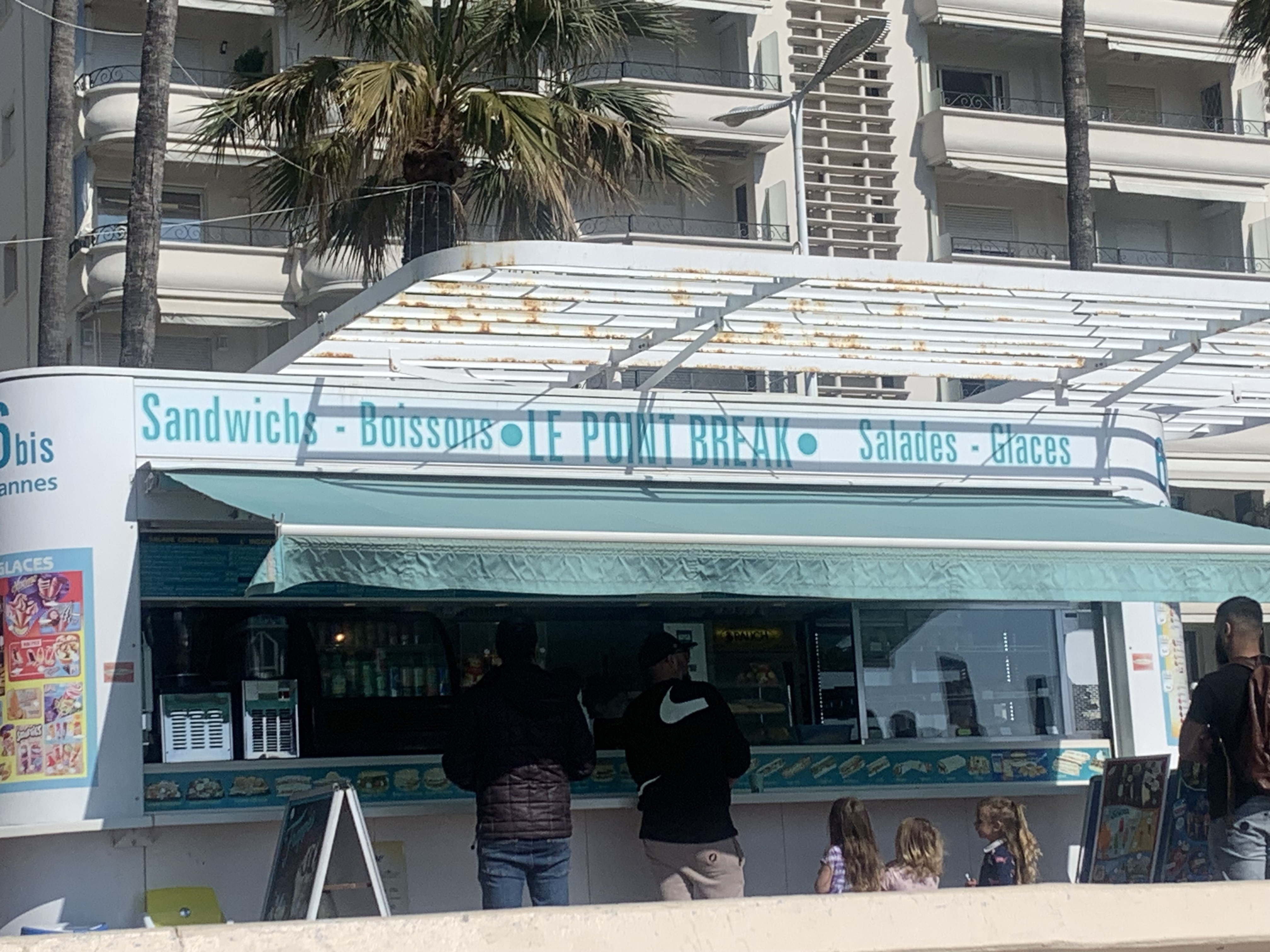 Kiosque en bord de mer sur la Croisette. Super endroit pour prendre un déjeuner ou un petit-déjeuner. Bonne qualité. Prix corrects pour le contexte. Personnel sympathique mais un peu lent. Très bon Pan bagnat.