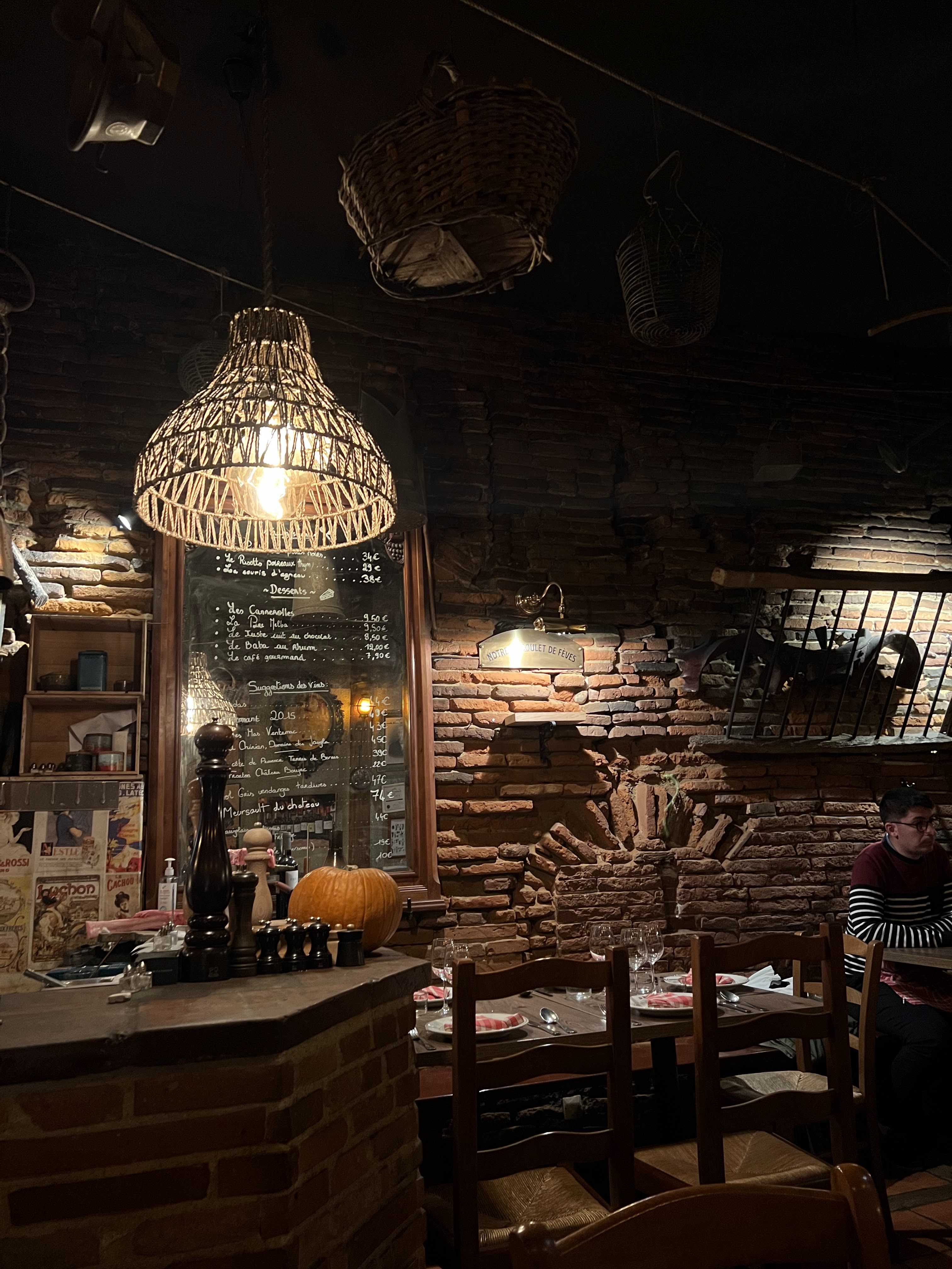 🌟 Une super soirée ! 🌟 De passage à Toulouse, on cherchait un restaurant atypique, avec des plats traditionnels locaux et de qualité. Pas déçus ! Nous avons pris dès fevoulets et un gâteau de canard effiloché, 2 excellentes spécialités. Mais avant cela, nous avons eu l’entrée surprise : un panier garnis de légumes, de saucissons, de canard, soupe aux oignons... un repas gargantuesque ! Le décor est également incroyable ! Nous étions dans le sous-sol, dans la charmante cave en voûte. Cosy, romantique, discret, parfait. Super accueil, serviable, souriant. Nous n’avions pas réservé et Thomas a fait l’effort de nous accueillir malgré qu’il avait d’autres réservations. Franchement, une soirée parfaite qui mérite un avis positif et détaillé ! 👍 💸 Niveau prix : très abordable vu la quantité à manger, le décor, la qualité, l’accueil... 150€ (2 plats, 2 desserts, 1 bouteille de vin, 3 apéritif, 3 digestifs).