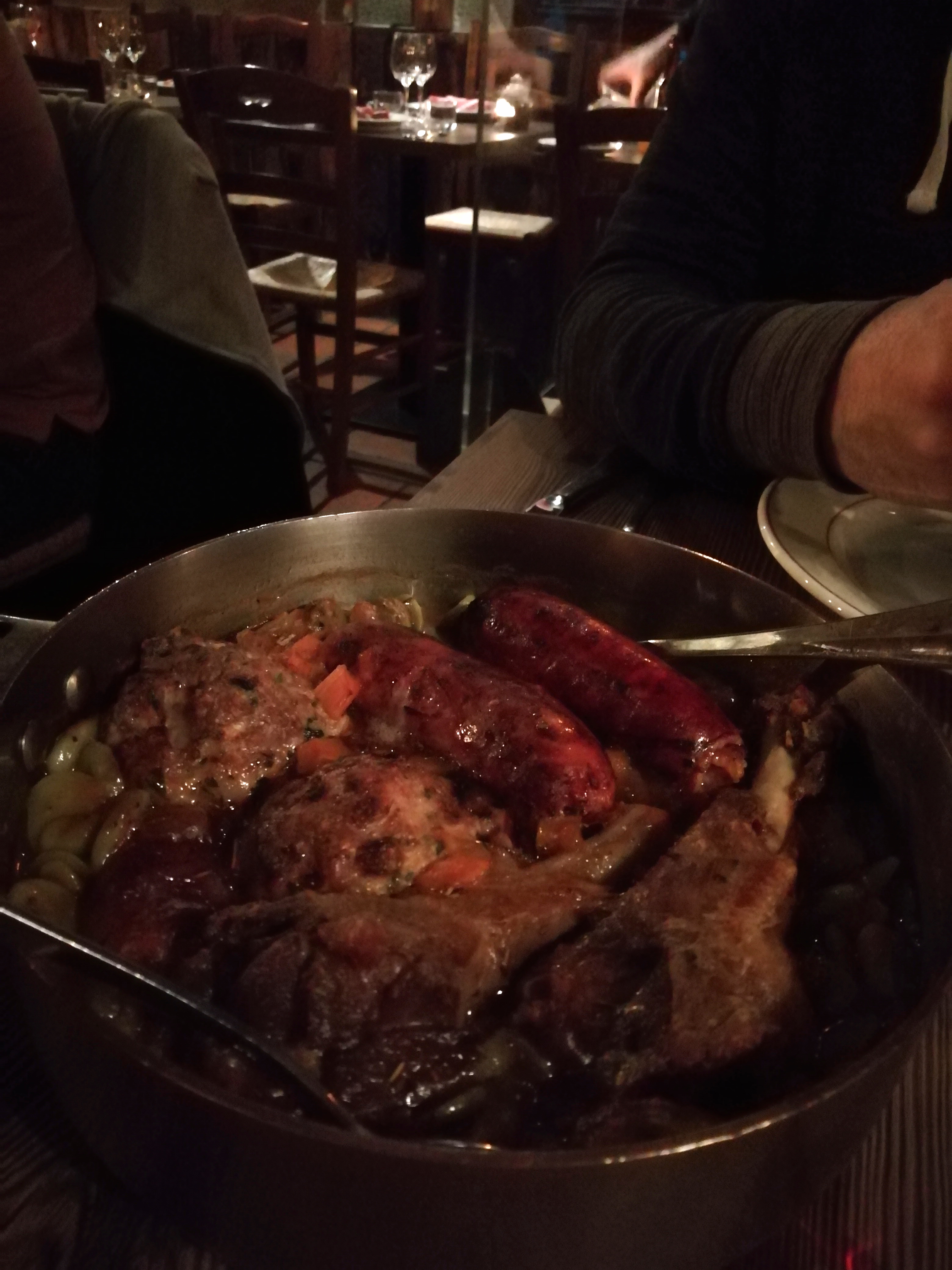 Cuisine locale et réconfortante, en passant à Toulouse, on cherchait bien sûr à tester un vrai cassoulet du terroir. Malheureusement tout est très gras, saturé ou baignant dans la graisse de canard et d’oie, de la soupe à l’onion, aux fèves du Cassoulet. C’est vraiment dommage. Le service est pourtant bien, à la bonne franquette comme on peut l’imaginer et la polenta au lait de chèvre excellente (spécialité maison)!