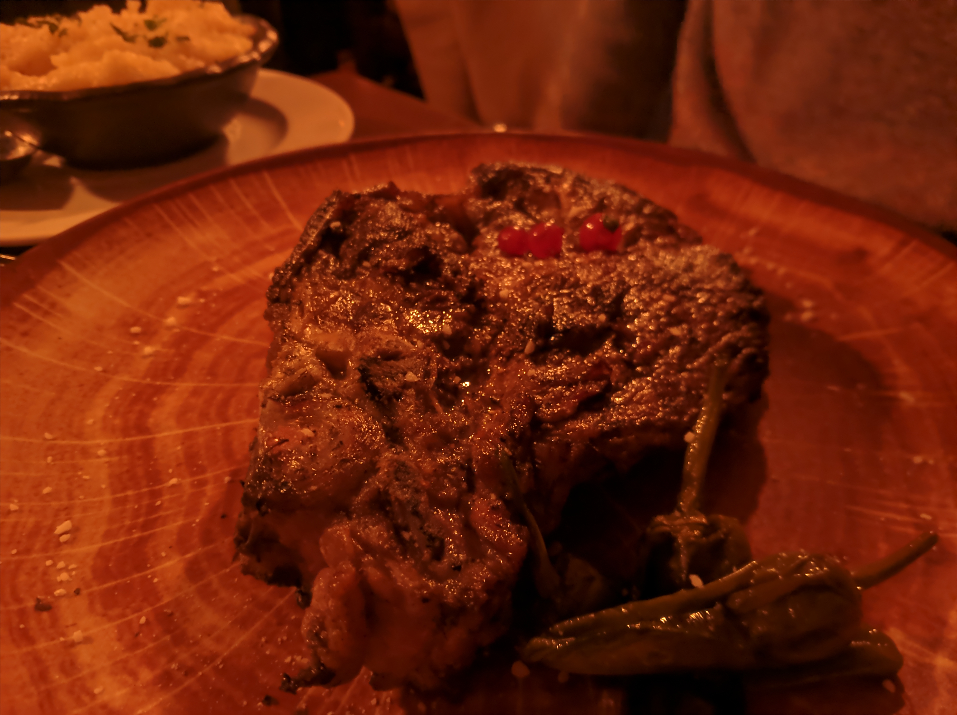 Belle découverte, très copieux, et service agréable, mais déçu de l'entrecôte qui était sèche malgré une cuisson saignante qui était respectée, donc celà ne vient pas de la cuisson ( une congélation ou une qualité moyenne ) et le poivre mis sans demander n'est pas de mon goût. Dommage ! Je l'ai précisé à l'un des serveurs qui s'est excusé.