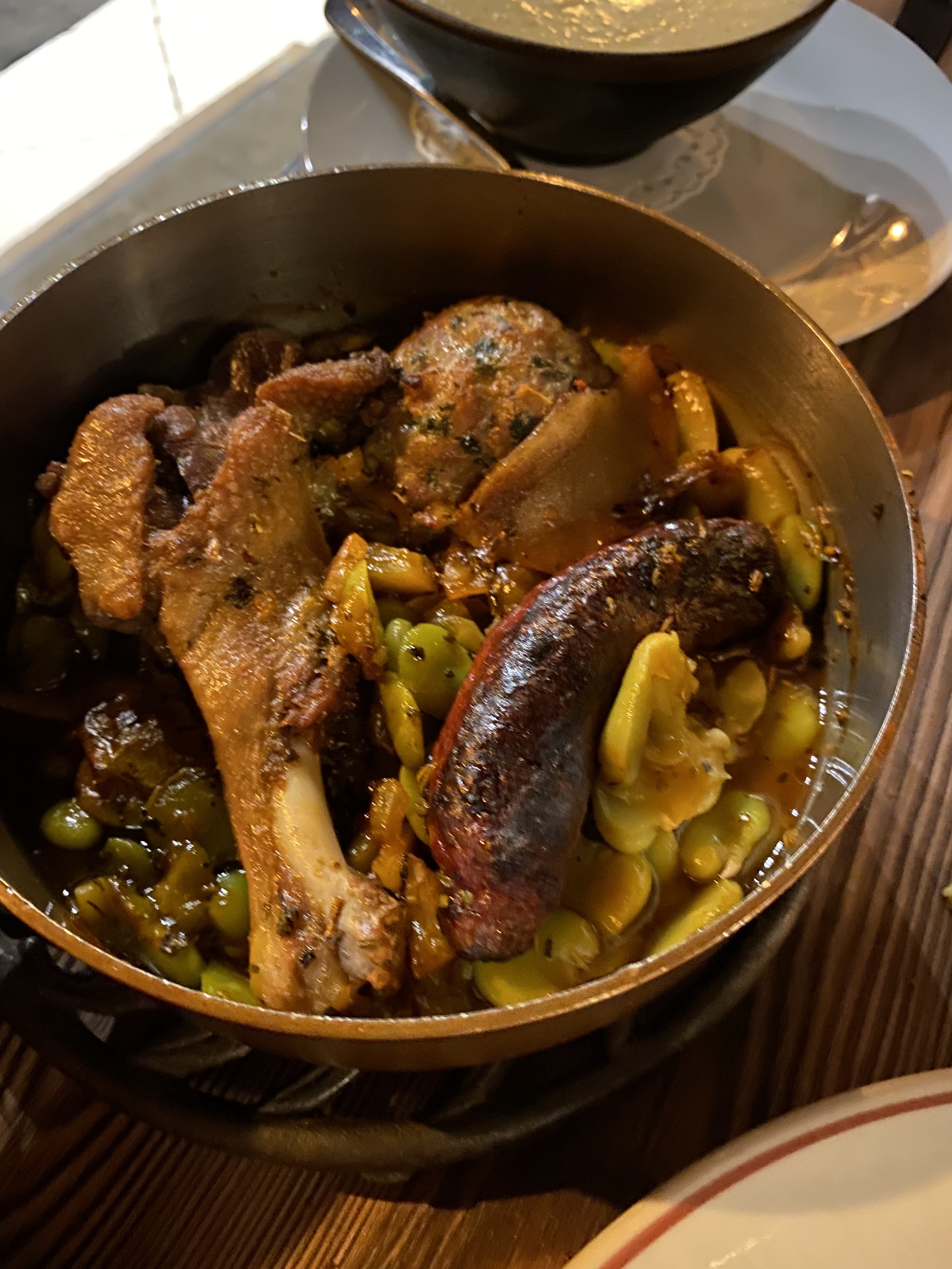 Cassoulet aux fèves original et très bon. Le panier d entrés est original et sympathique. Les portions sont généreuses. A faire si vous souhaitez sortir du cassoulet aux haricots.
