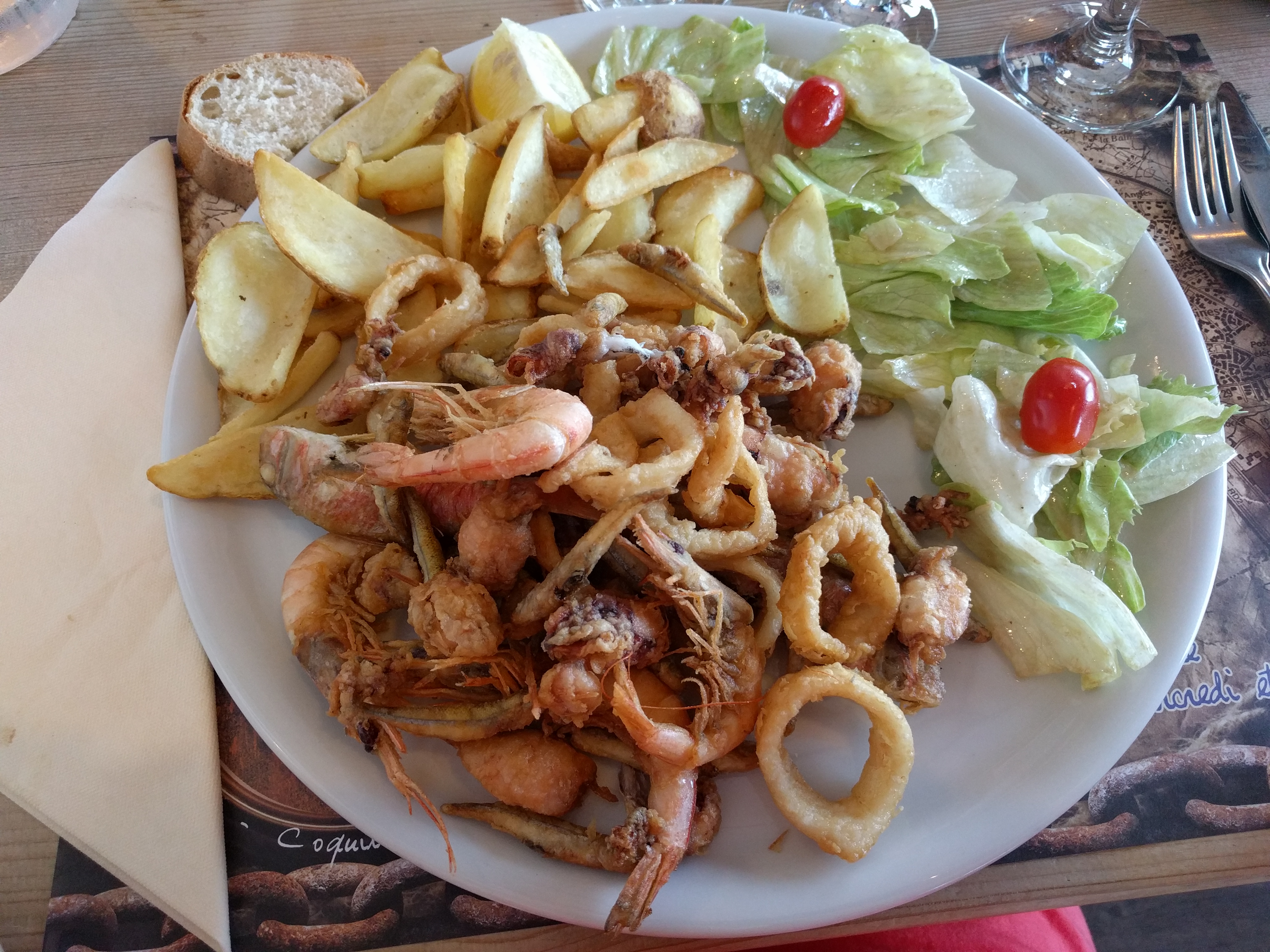 Sur la route de Marseille… étape à Balaruc les Bains… une tuerie avec la spécialité Les sirènes… brochettes de poissons… 😉