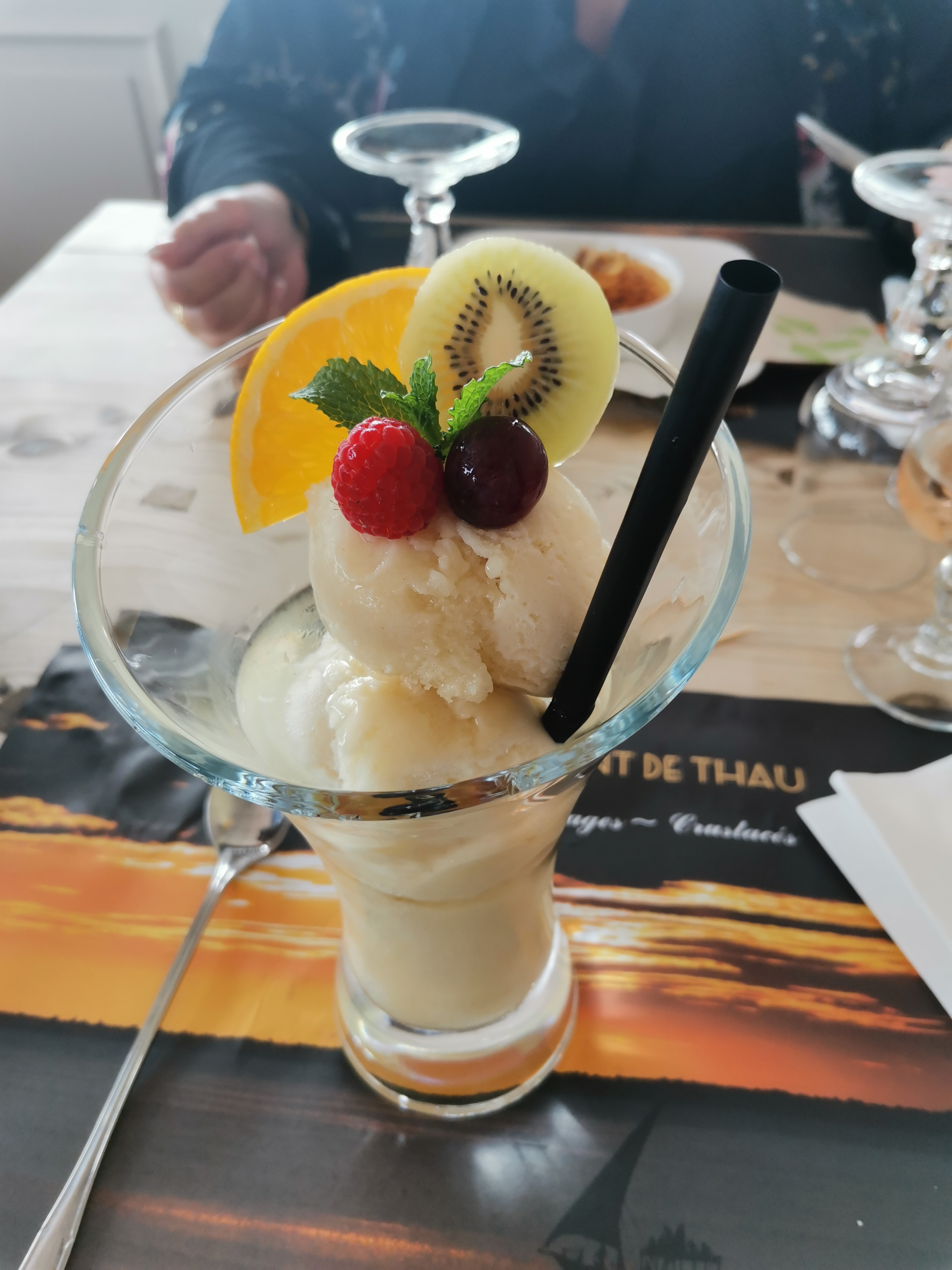 Depuis 8 ans que nous venons sur balaruc, nous n'avions pas vu ce restaurant à l'étage dont l'entrée est un peu cachée. Nous y sommes allés sur les conseils d'une commerçante et nous n'avons pas été déçus. C'est excellent et certaines formules sont originales. L'accueil et le service sont agréables également. Nous y reviendrons.
