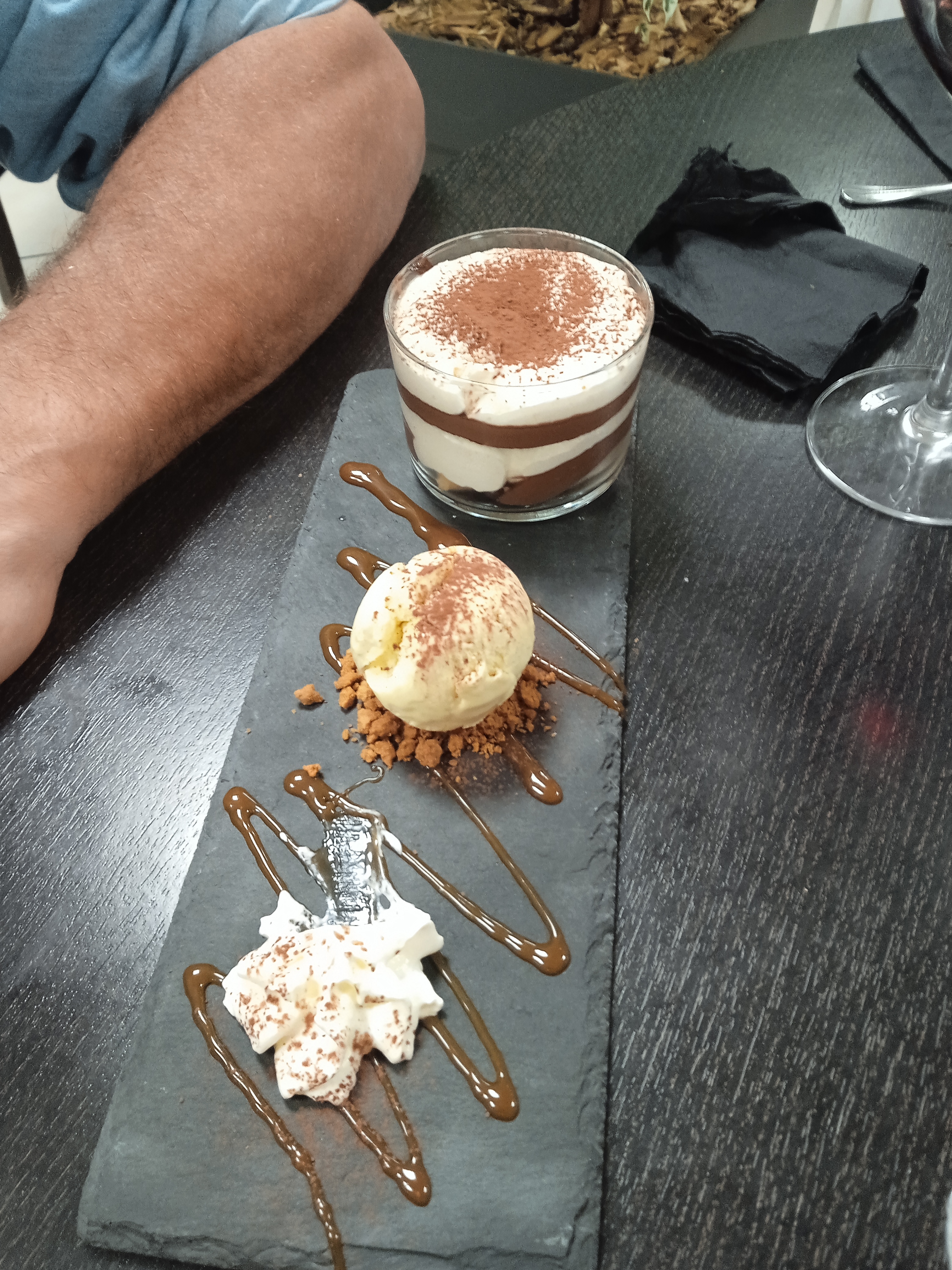 Personnel sympathique mais manquant visiblement d ‘expérience : lenteur du service , ne nettoie pas la table avant de nous la dresser, se trompe dans la commande des glaces , trois plats seulement proposés mais aucune carte indiquant le prix de ceux ci . Ce qui dommage vue la qualité des produits. En améliorant ces points ce restaurant deviendrait une super adresse avec un cadre très sympathique.