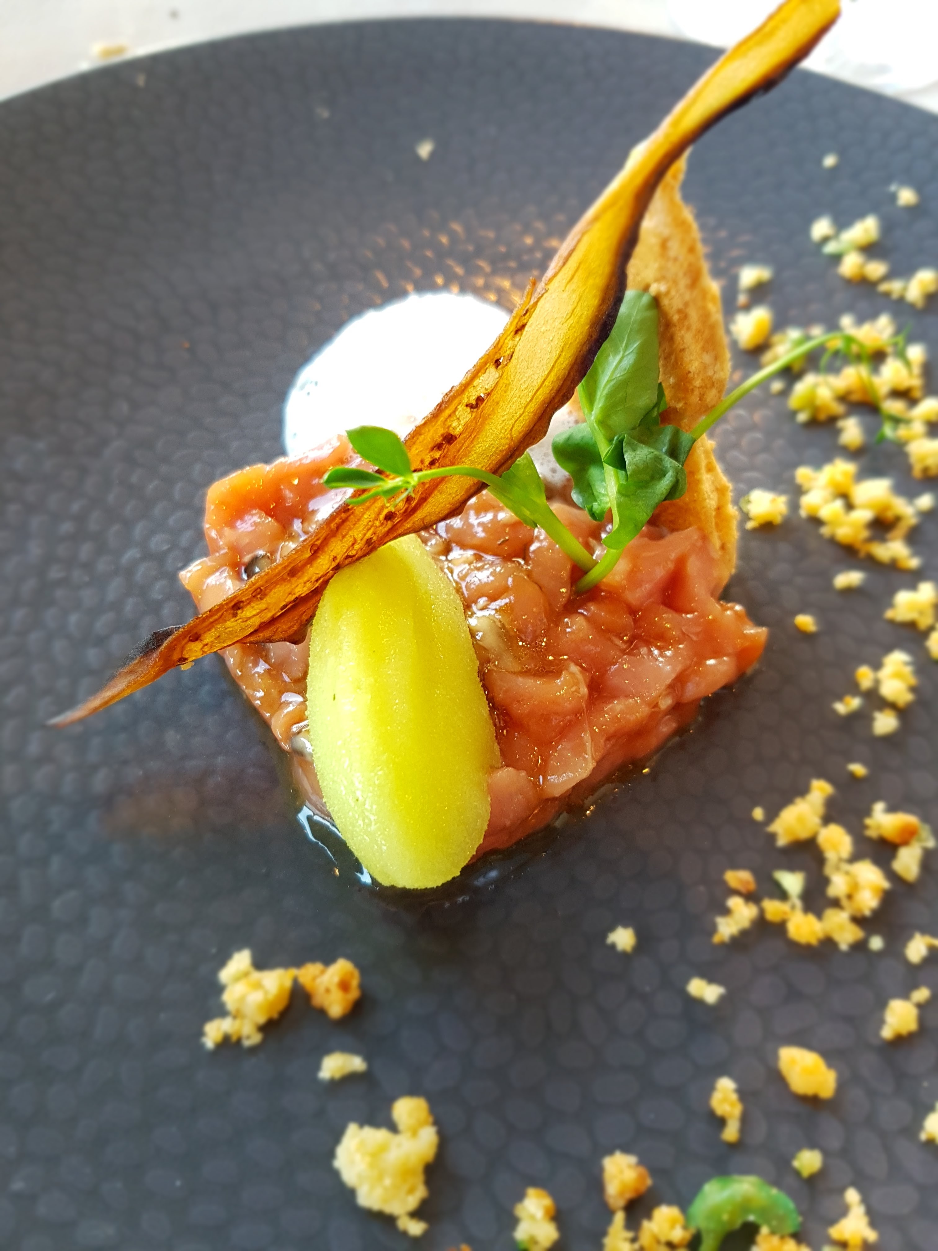 Le tartare de Saint-Jacques était incroyable, servi sur une panna cotta au blé noir avec un coulis d’agrumes. Un mélange vraiment très sympa ! Le poisson du moment (Saint-Pierre) était cuit à la perfection et accompagné d’une très bonne garniture. Le dessert fruité était également excellent. Le service en salle était très bon, avec de bons conseils pour le choix du vin. Ils proposent un menu végé, ce qui est top si l’un des convives est végétarien. Une super expérience ! 🙂