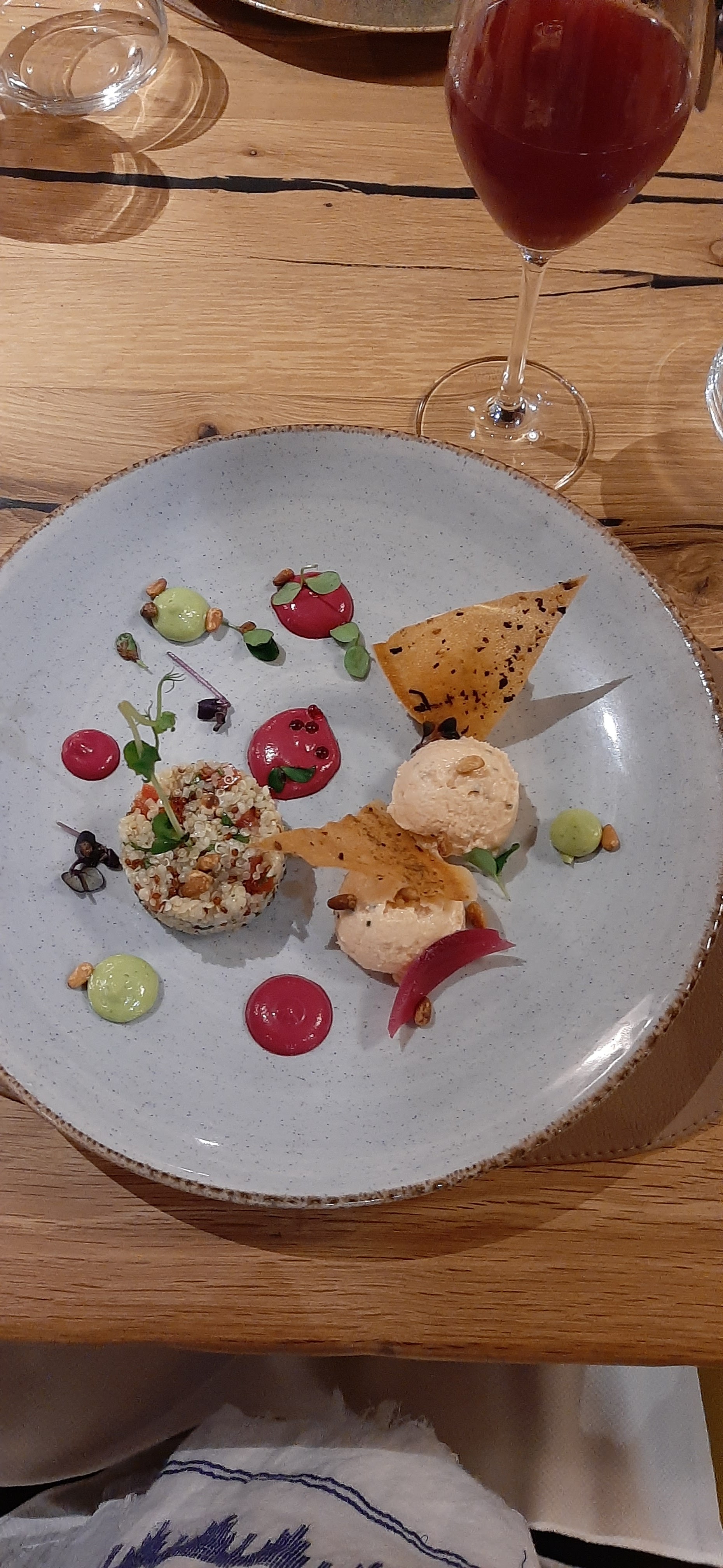 Cuisine raffinée, subtile, très bonne harmonie des saveurs,assiettes magnifiquement présentées. Qualité et quantité font bon ménage. Notre serveuse était agréable et efficace. Bon tempo pour le service. Nous aurions apprécié un bonjour ou au moins un sourire de la patronne!