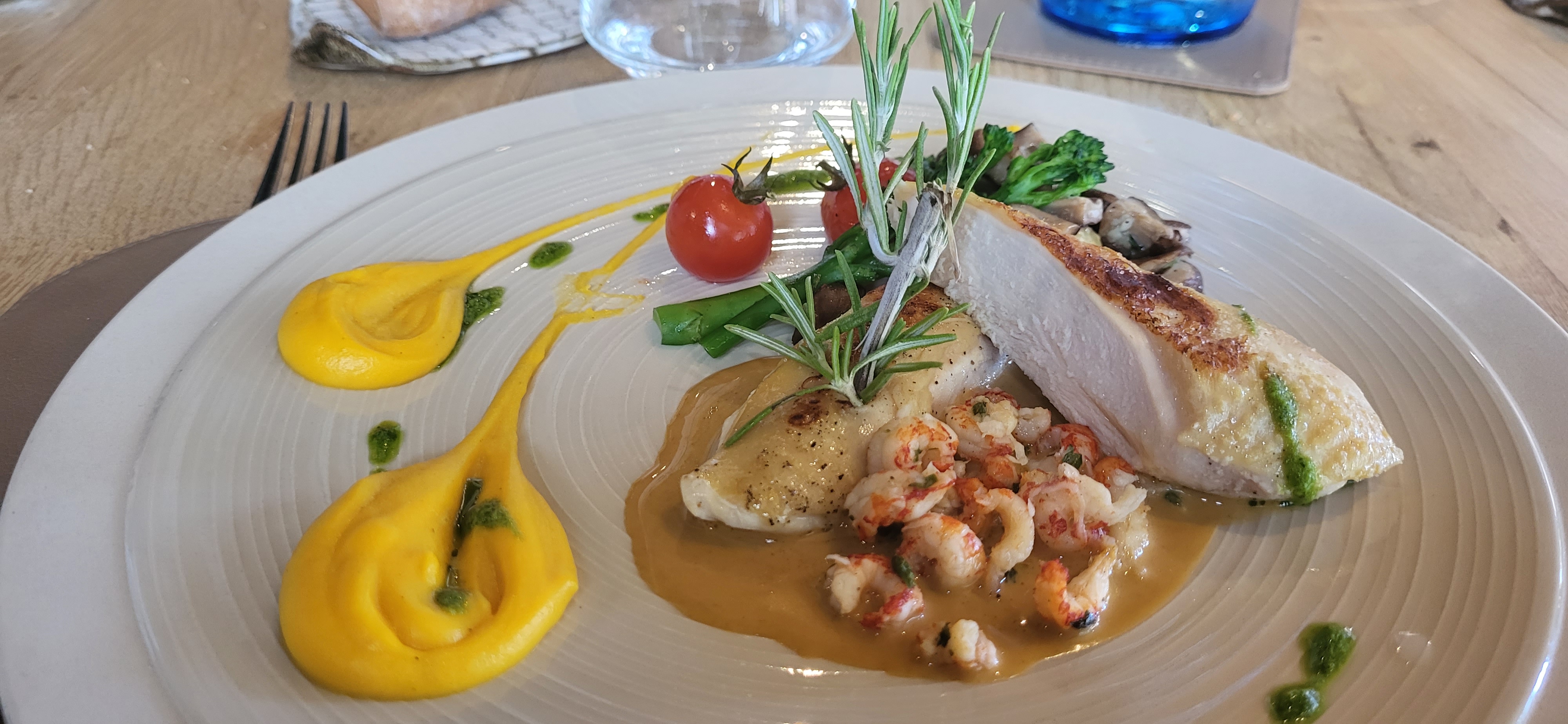Beau restaurant avec une très bonne cuisine. Un service agréable pas du tout envahissant, permettant de déguster la cuisine tranquillement en famille.