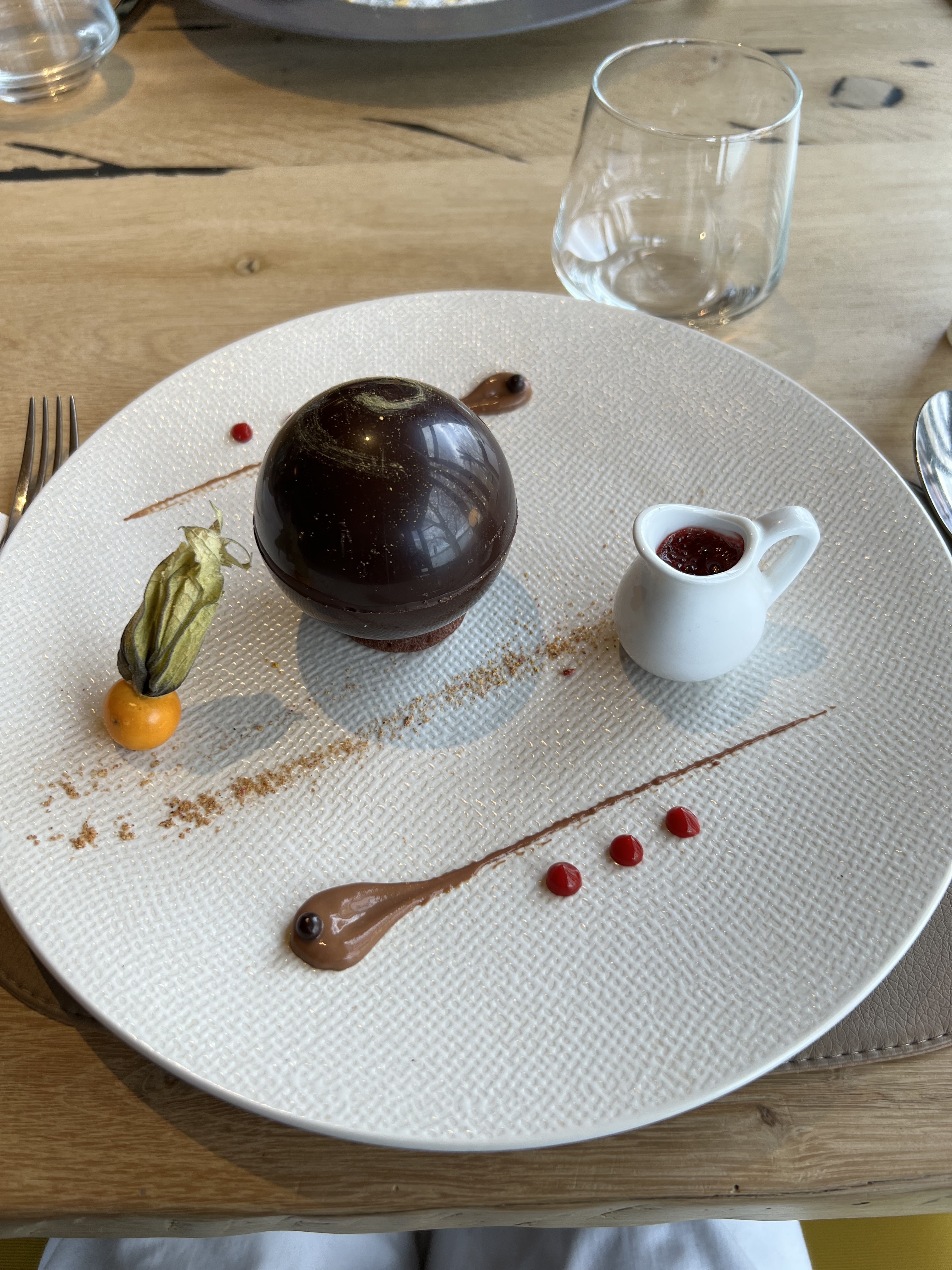 L accueil, le cadre, le menu.... Et le dessert la sphère chocolat exceptionnelle... Les yeux fermés... Je recommande vivement...