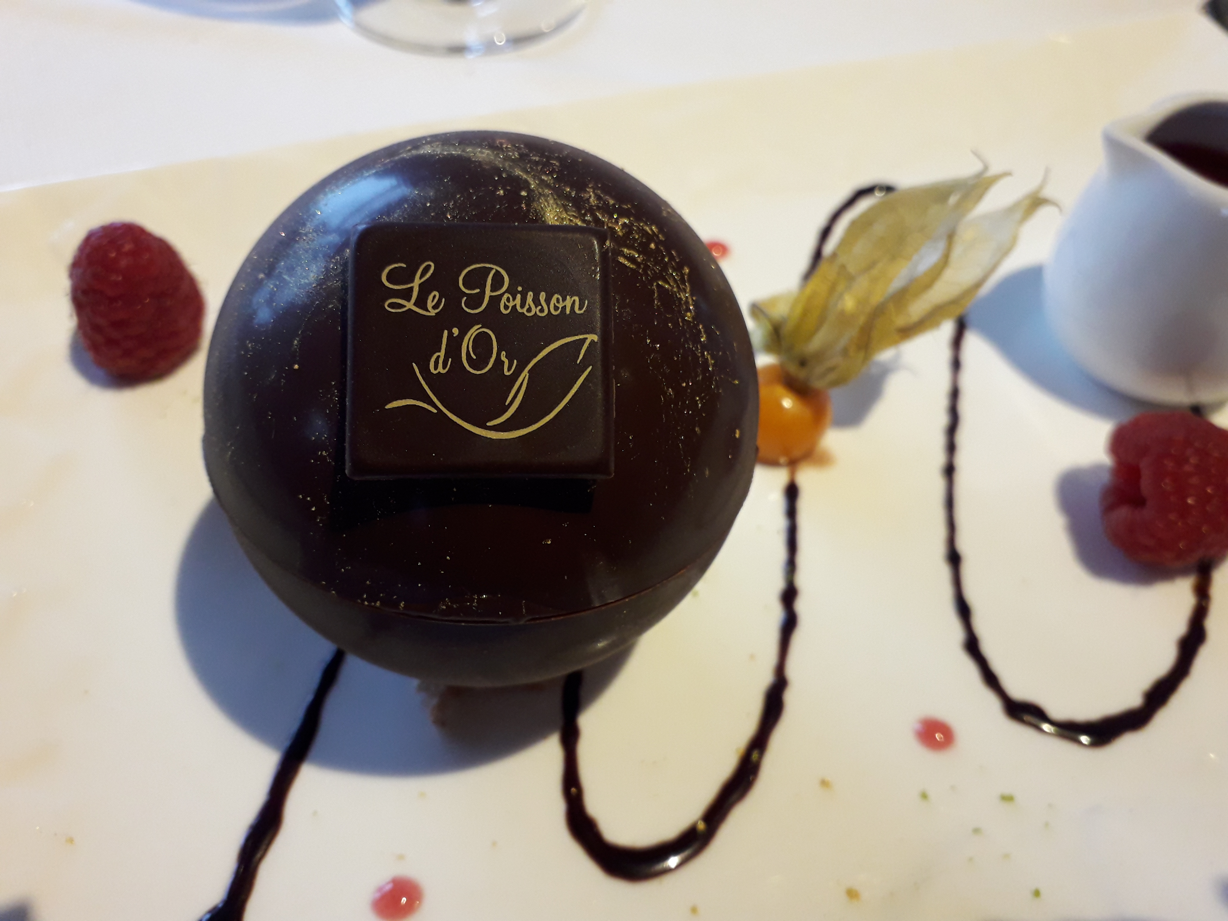 Nous sommes allés au Poisson d Or pour un repas familial pensant pouvoir profiter de la terrasse, malheureusement le temps ne nous a pas permis de manger en extérieur. Installation donc dans la Salle de Restaurant très agréable , bon accueil. plats raffinés , beaux et bons desserts . Nous avons passé un très bon moment.