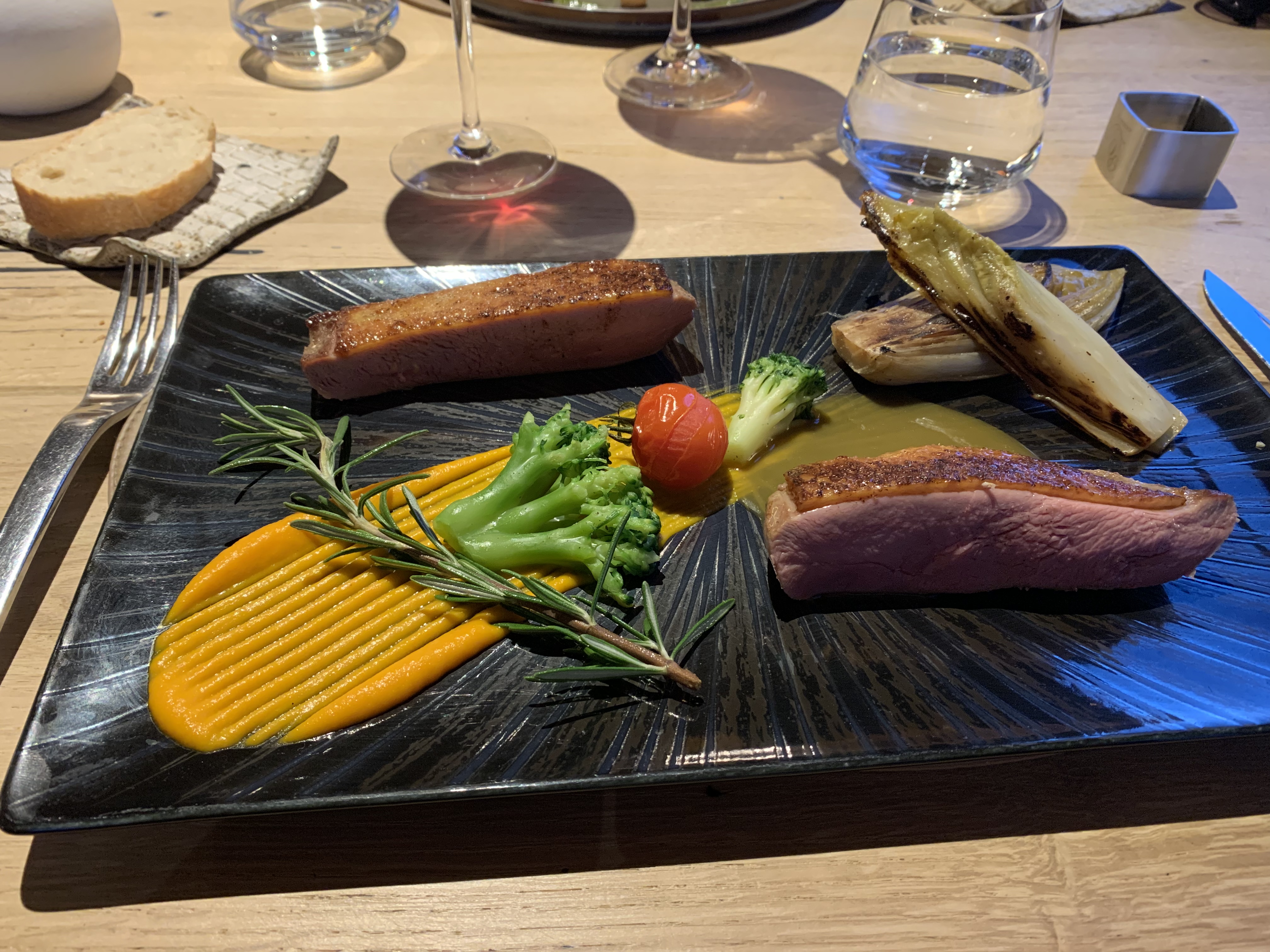 Cadre sympathique comme l accueil mais la cuisine classique et rien de bien transcendant. Aucune découverte culinaire. Canette classique accompagné de légumes Tristounets Même le dessert tarte fine passion ç est transformé en tartelette rectangulaire avec des bâtonnets meringue tout mous donc rien à voir en goût ni texture. Voilà ceci n est que on humble avis