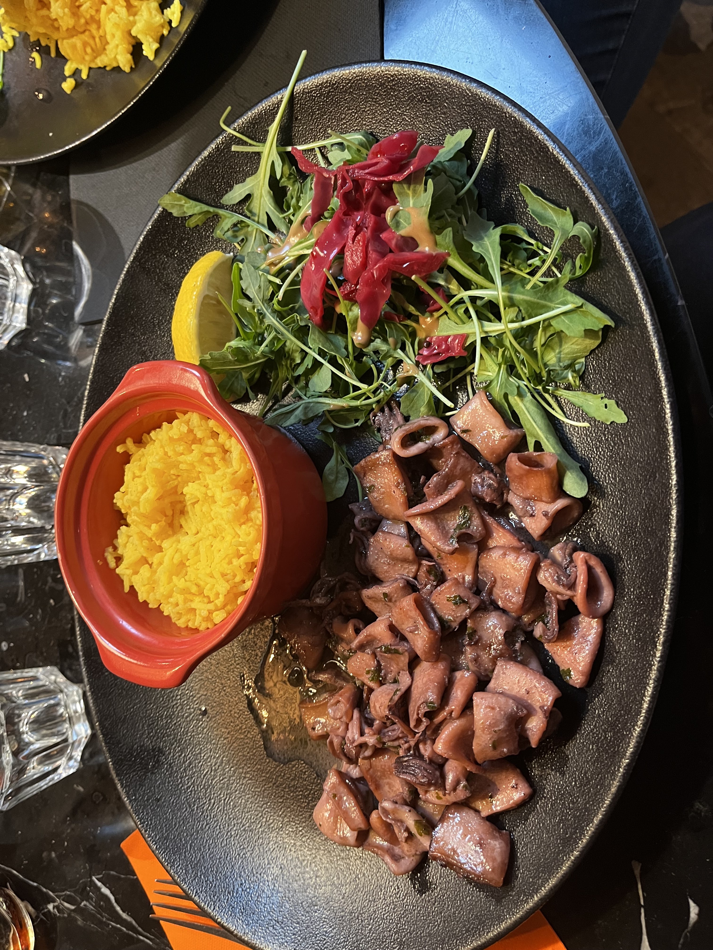 Plats, bonne quantité, manque de sauce avec les chipirons.