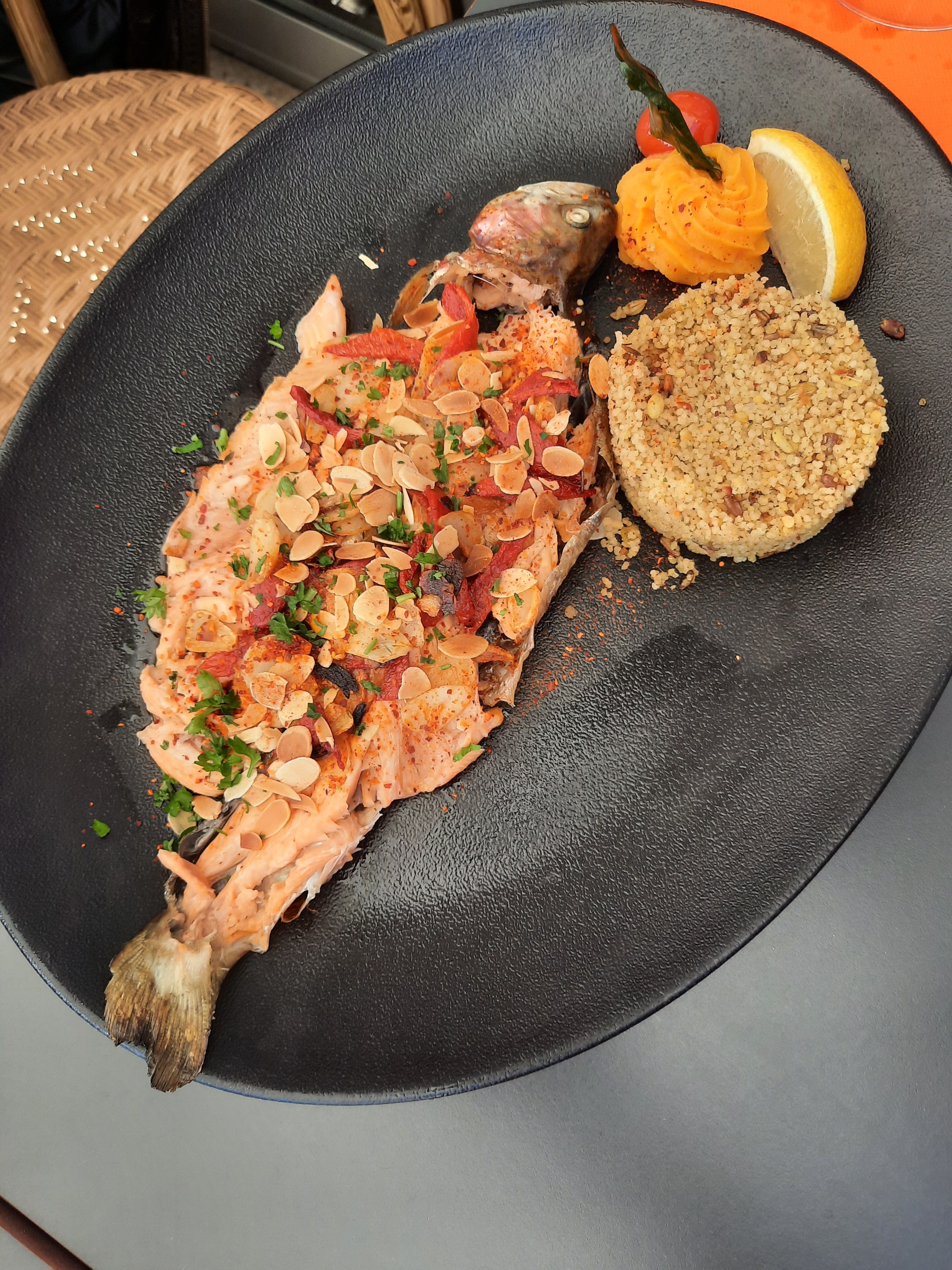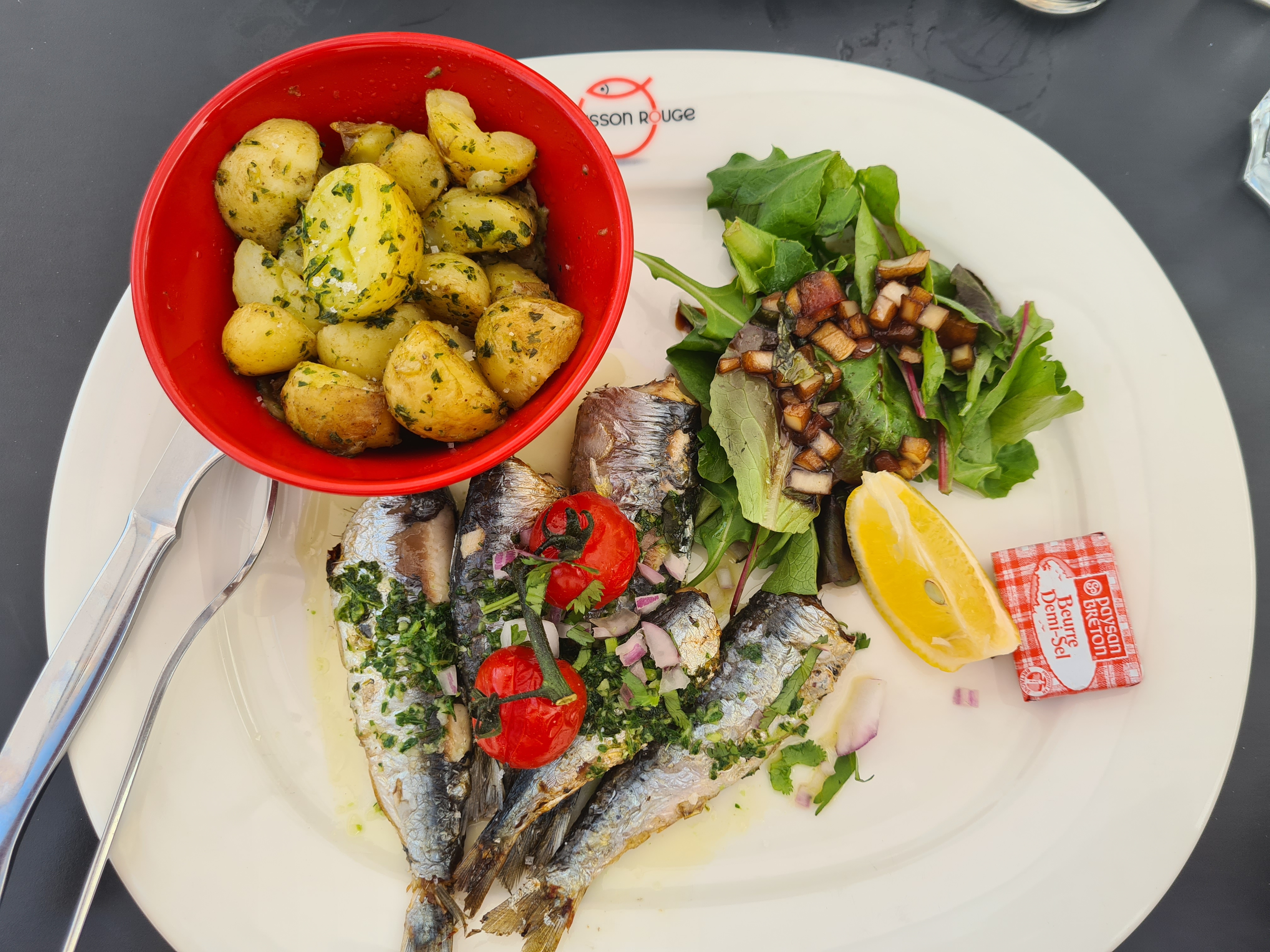 Un arrêt pour le déjeuner en semaine dans ce restaurant sur le vieux port, à la décoration ou le poisson n’est pas que Rouge. Très sympa. Menu du jour entrée plat dessert à 19,50€ tout est bon bien cuisiné et copieux. Service impeccable et très souriant (merci à la jeune fille qui nous a servi toujours avec un grand sourire)C’est un endroit très agréable. Bon rapport qualité prix. Nous recommandons.