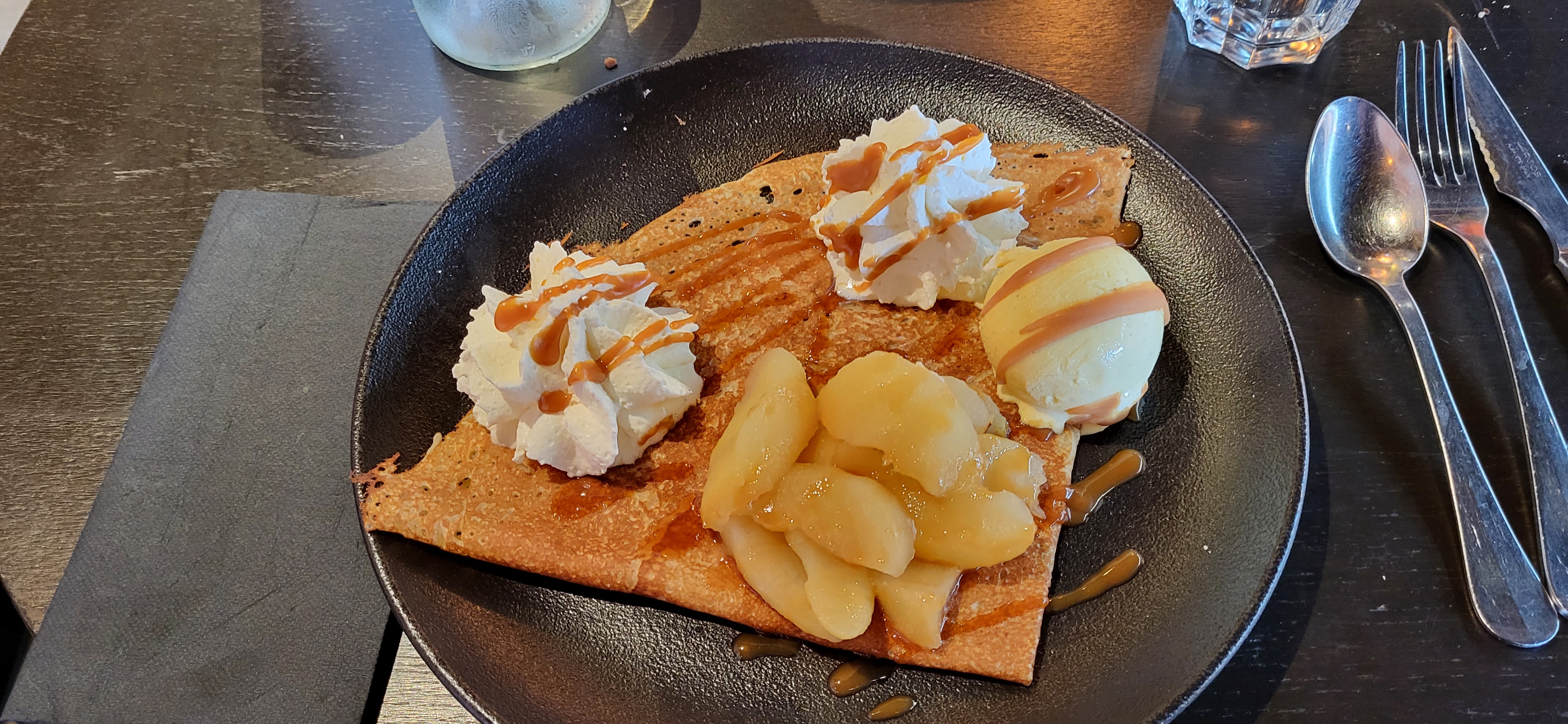 Pause goûter dans ce joli restaurant décoré avec bcp de goût. Les meilleures crêpes sucrées de notre séjour La serveuse charmante et souriante