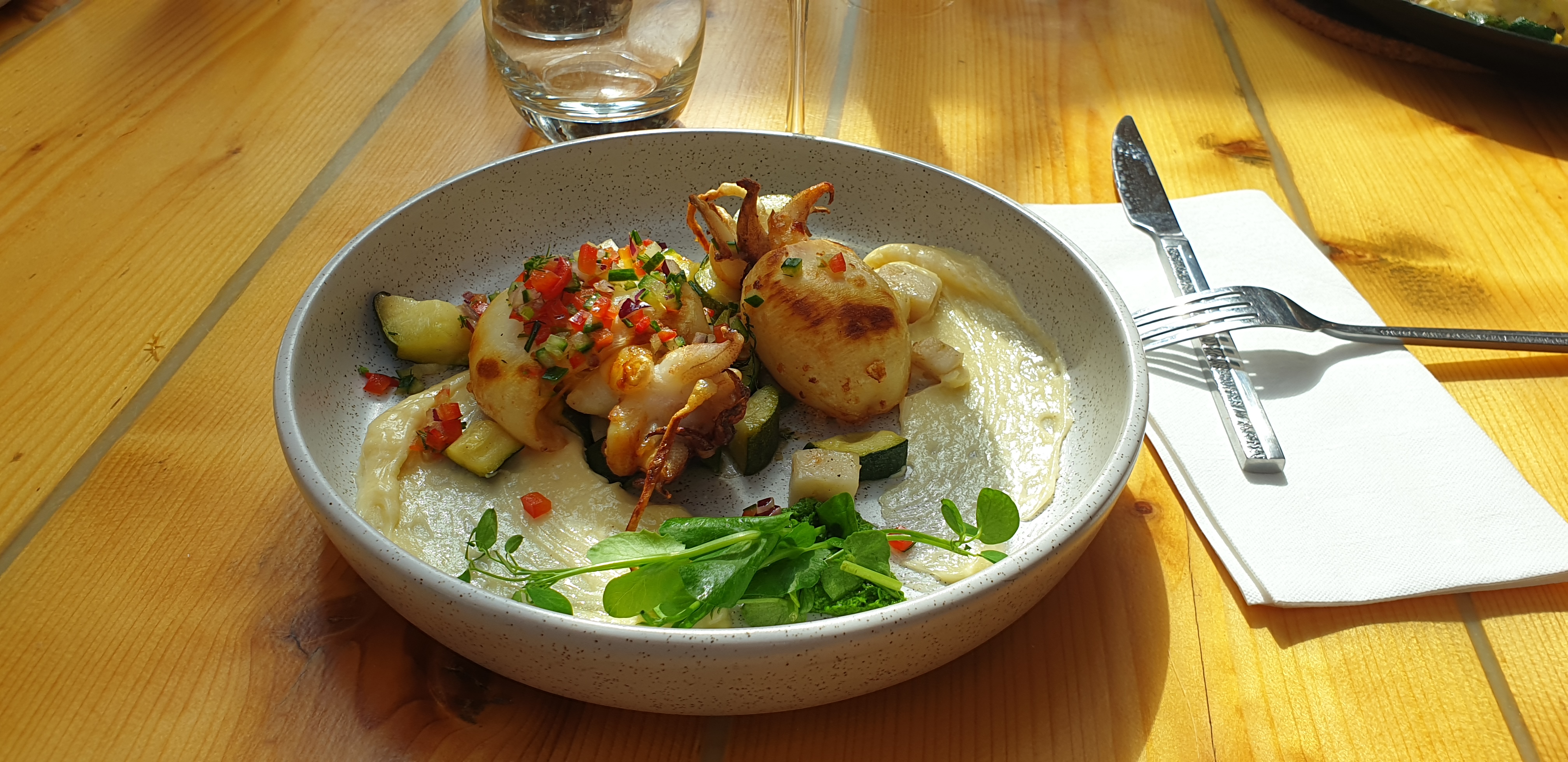 Cadre magnifique en bord de mer, déco soignée, plats de poissons excellents