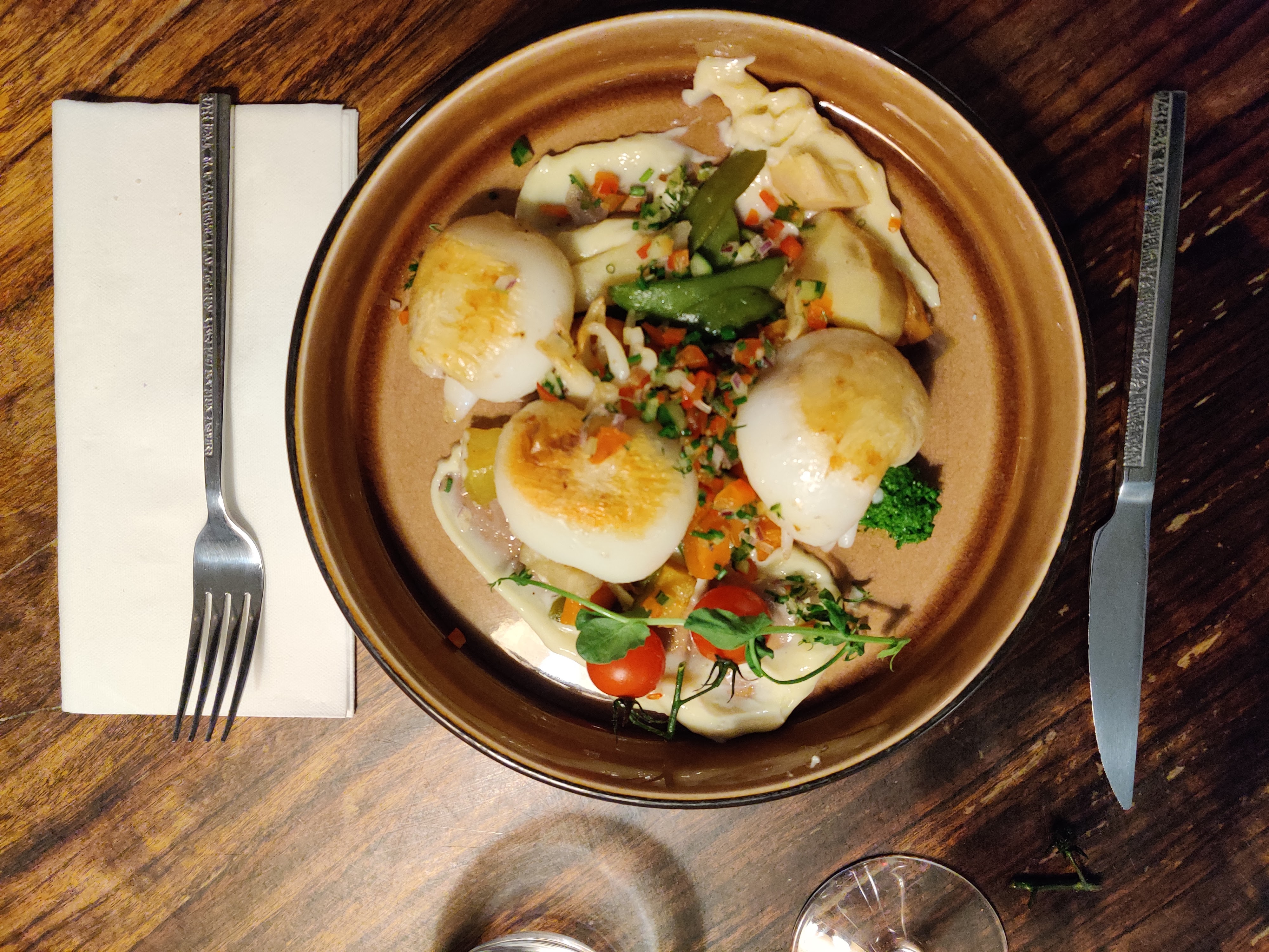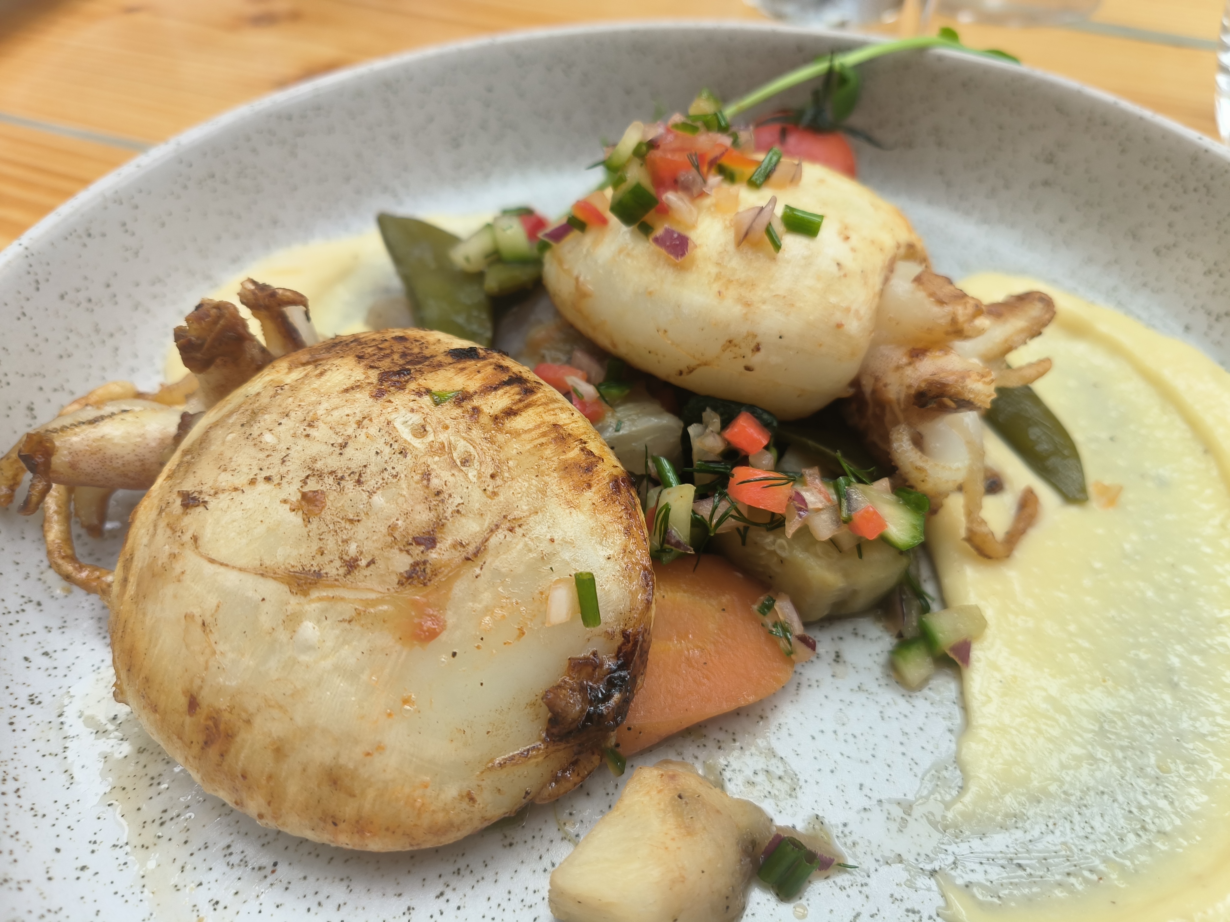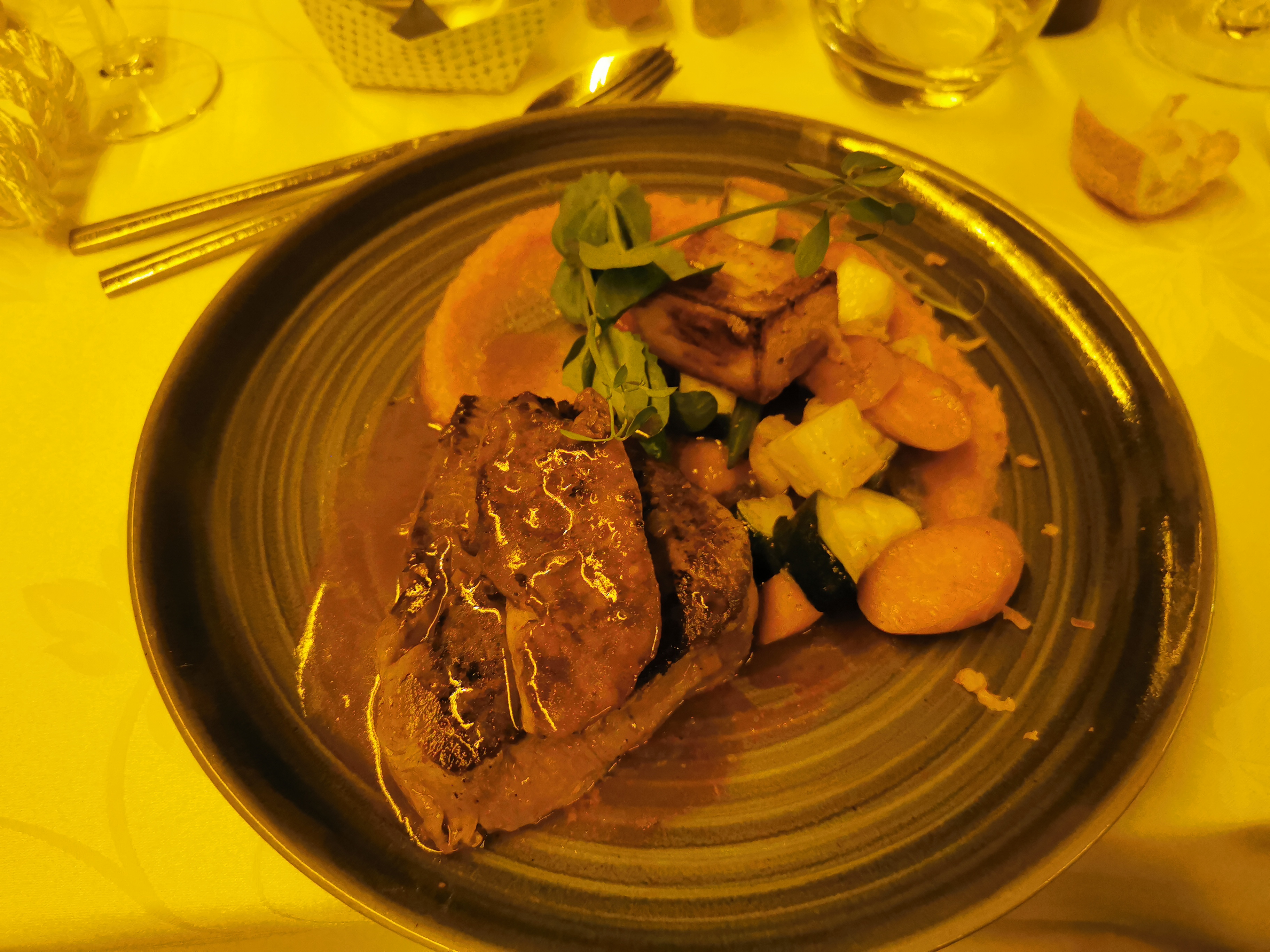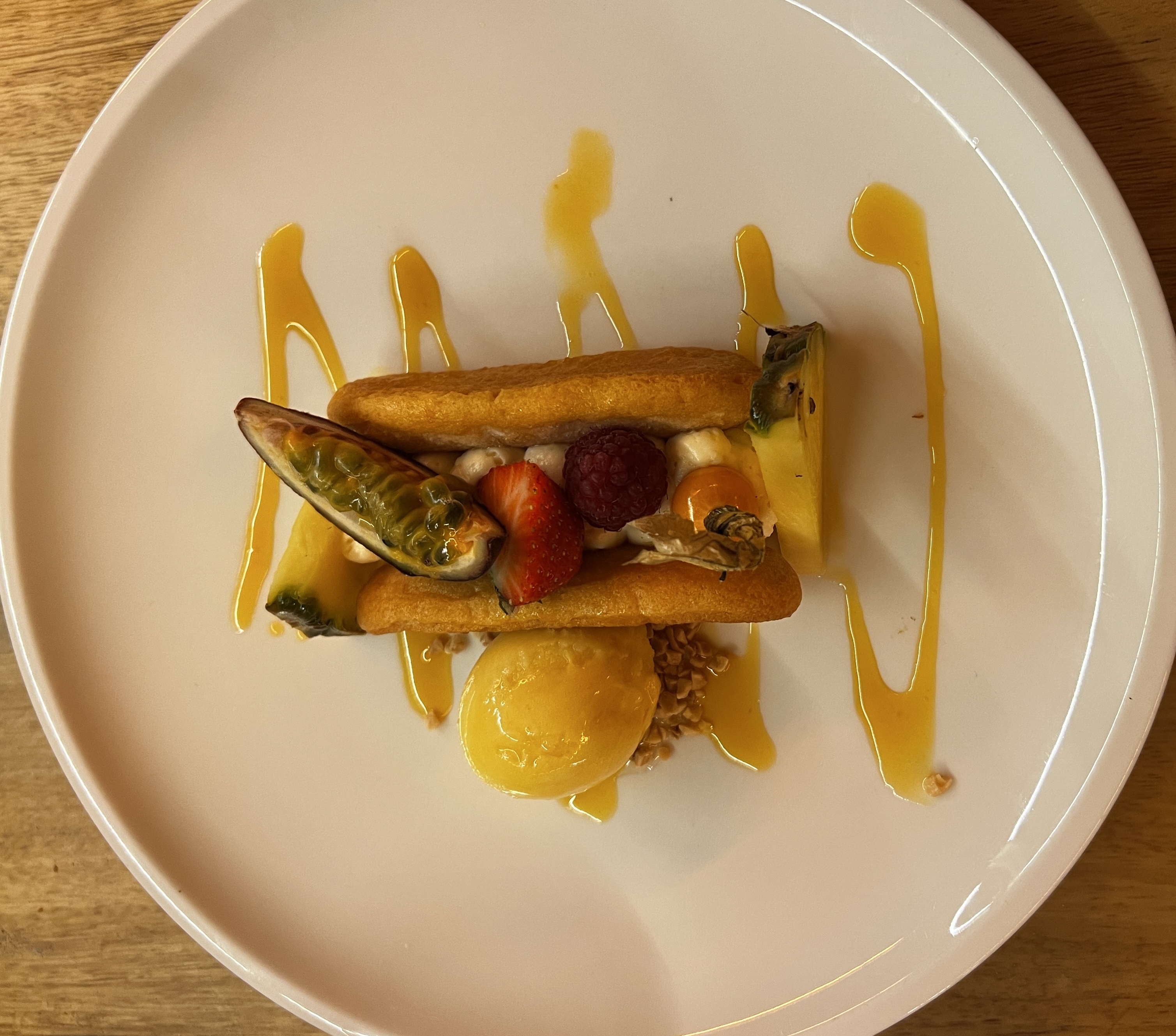 Succulent dès l'entrée jusqu'au dessert. Bon équilibre des saveurs et des differents éléments des plats. Service au top.