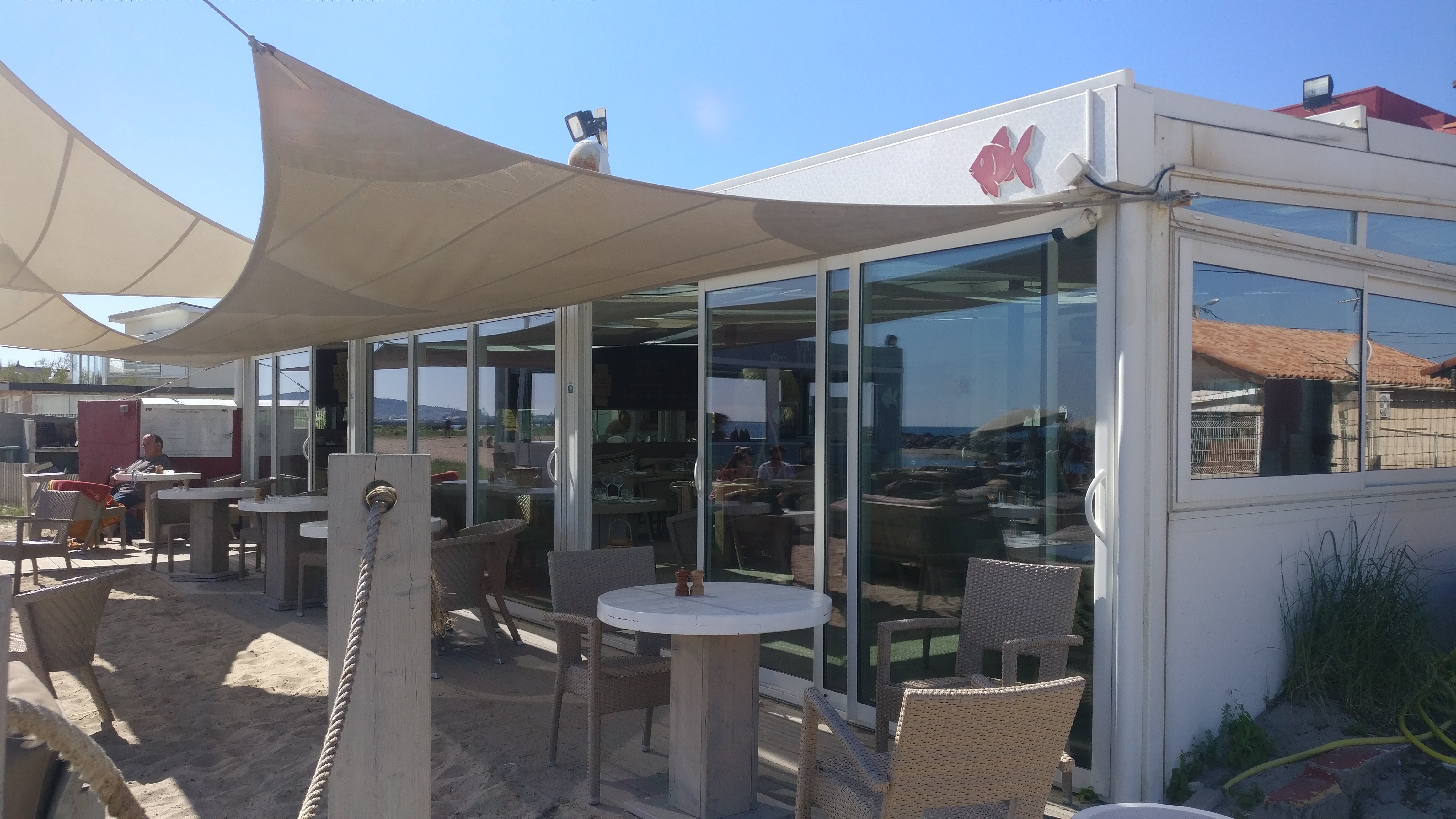 Un super restaurant, je suis aller avec un groupe de 8 personnes et le temps entre d'attente été très cours une command .les plats été délicieux mais un peu chère (sa en valeur le coup).La déco est a font dans le rouge comme le nom poisson rouge .il on mis un poisson rouge un peut de partout :sur la menus, des vins, des plats. Le serveur tre sympa ma donné le code Wi-Fi (donc il y a des la wifi gratuit).une super terrassa au bord de la plage. Je recommande se super restaurant. Si cette avi vous a plus merci d'avance de mètre un pouce bleue.