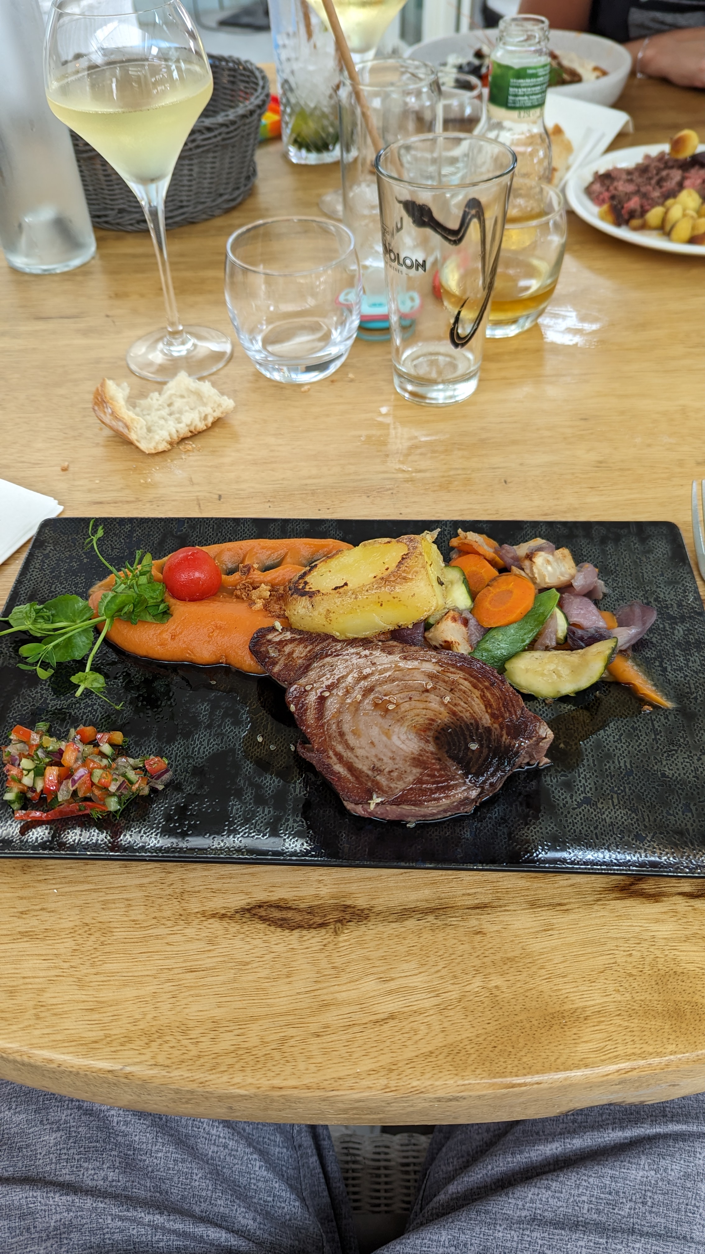 Malgré un petit couac (oubli de notre bon, mais bien rattrapé par le café et la glace offerte), le repas s’est très bien passé et tout a été très bon, dans un cadre magnifique ! Pensez à réserver pour avoir une place près de la plage !