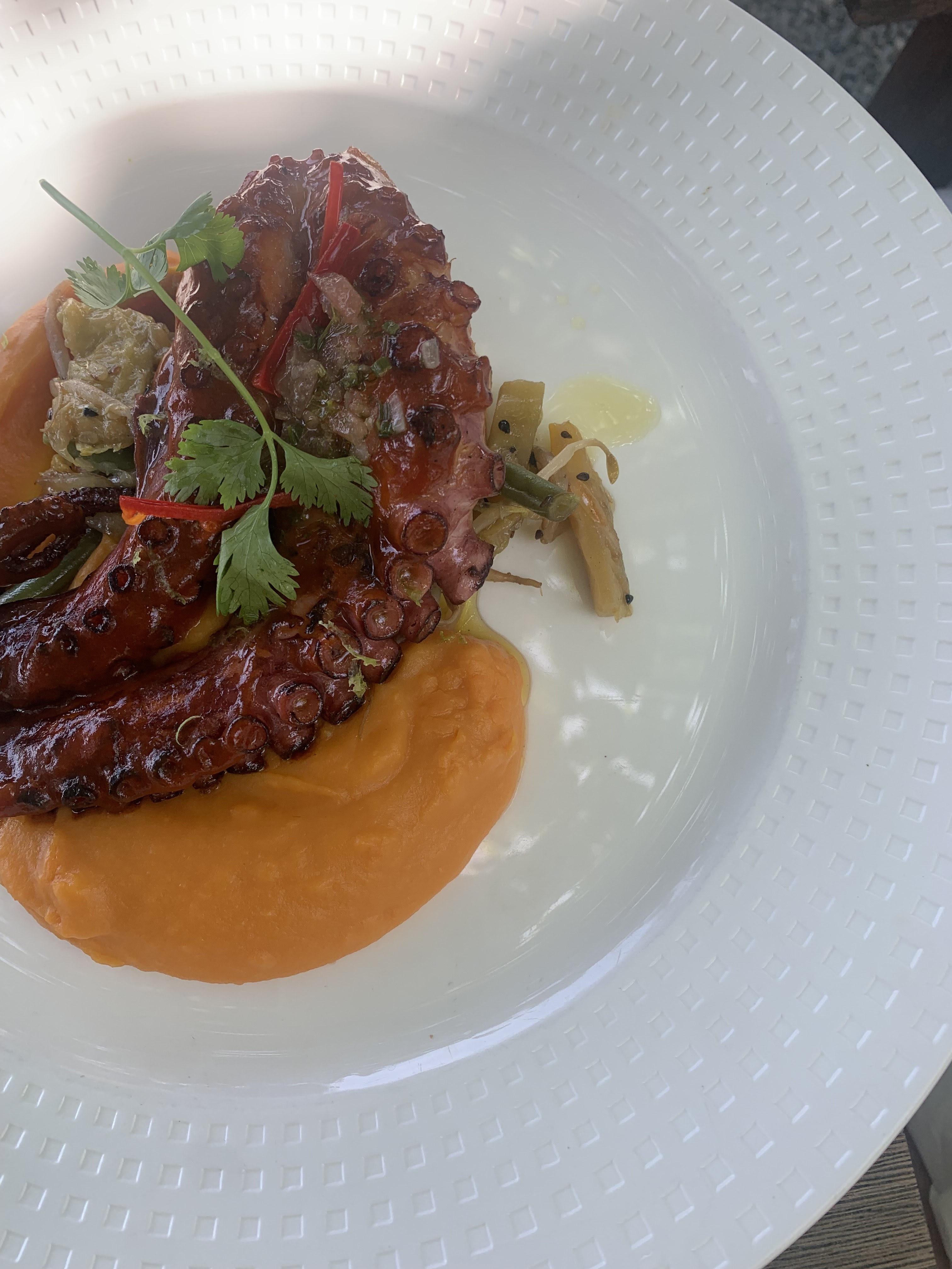Nous nous sommes régalés ! Spritz et accras de morue en apéritif 😋😋 🐙 poulpe grillé sauce vierge un délice ! Entrecôte grillée au feux de bois !! Personnel très sympathique 😁😁Nous recommandons 🤩🤩