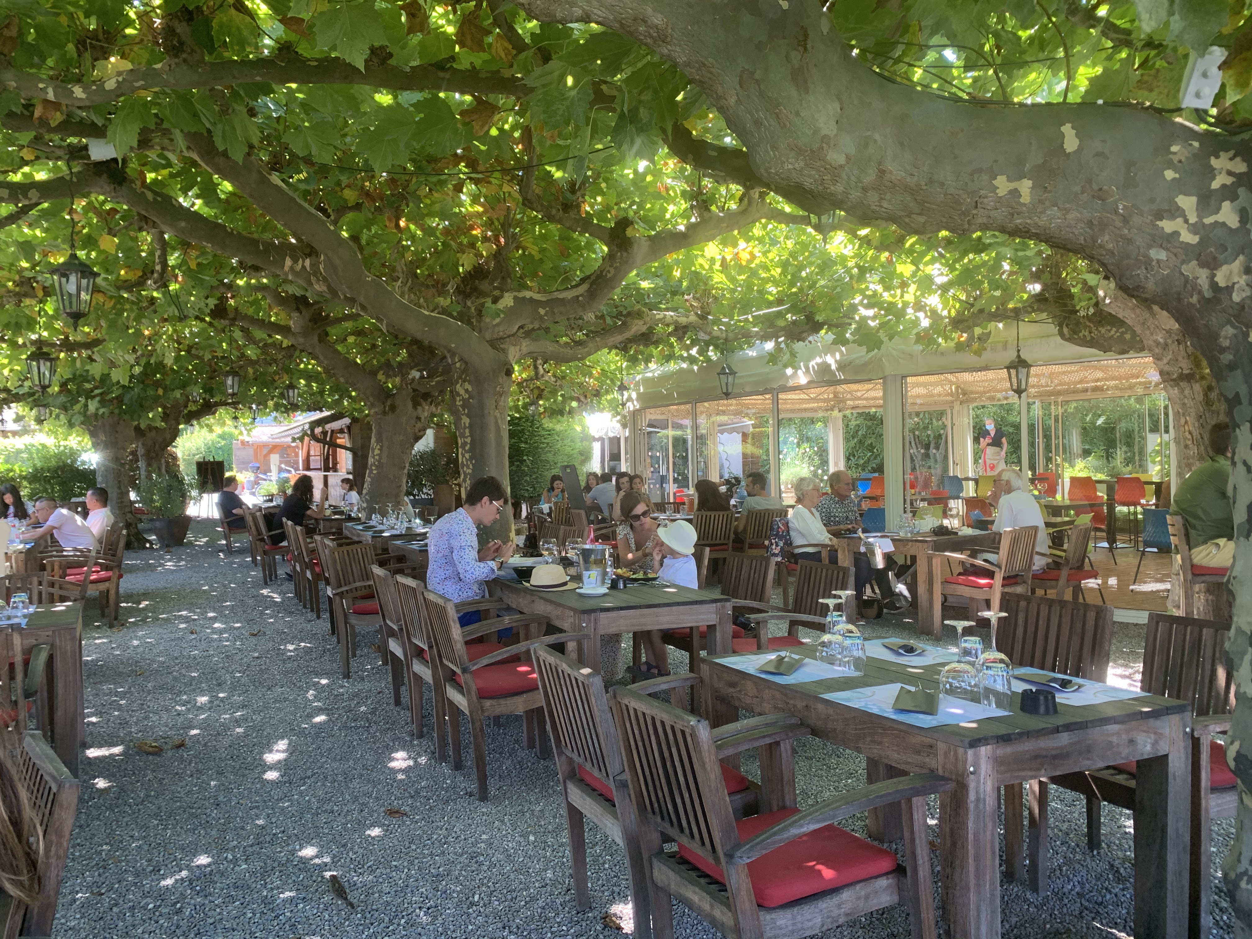 Lieu très sympa au bord du lac sur la terrasse ombragée. Joli choix de mets à la carte et également pour le vin. Possibilité de jouer à la pétanque.