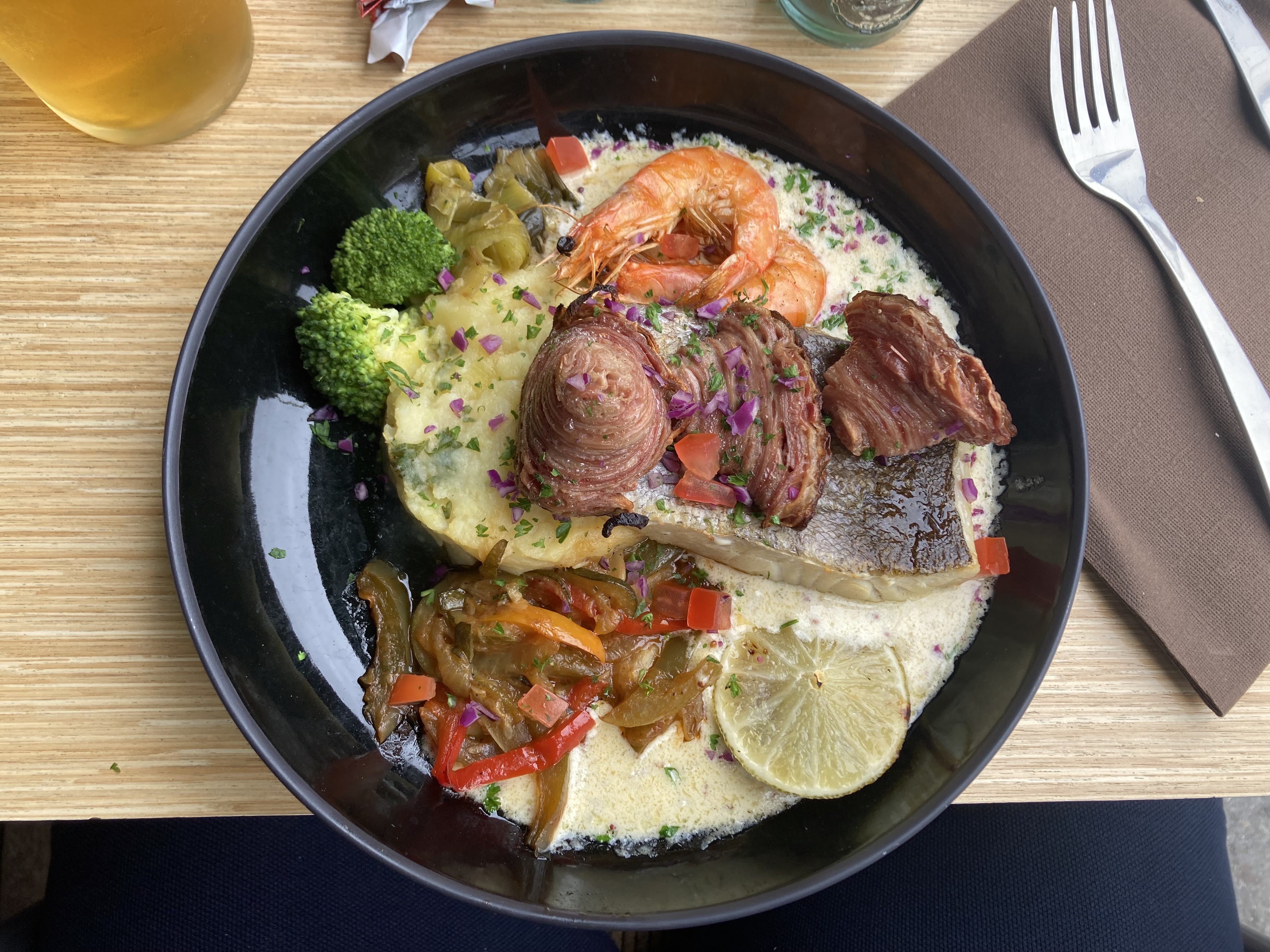 Lors d'une escale de croisière, nous avons apprécié un merveilleux déjeuner dans ce joyau local ! Le poisson était merveilleux et les feux français fantastiques !