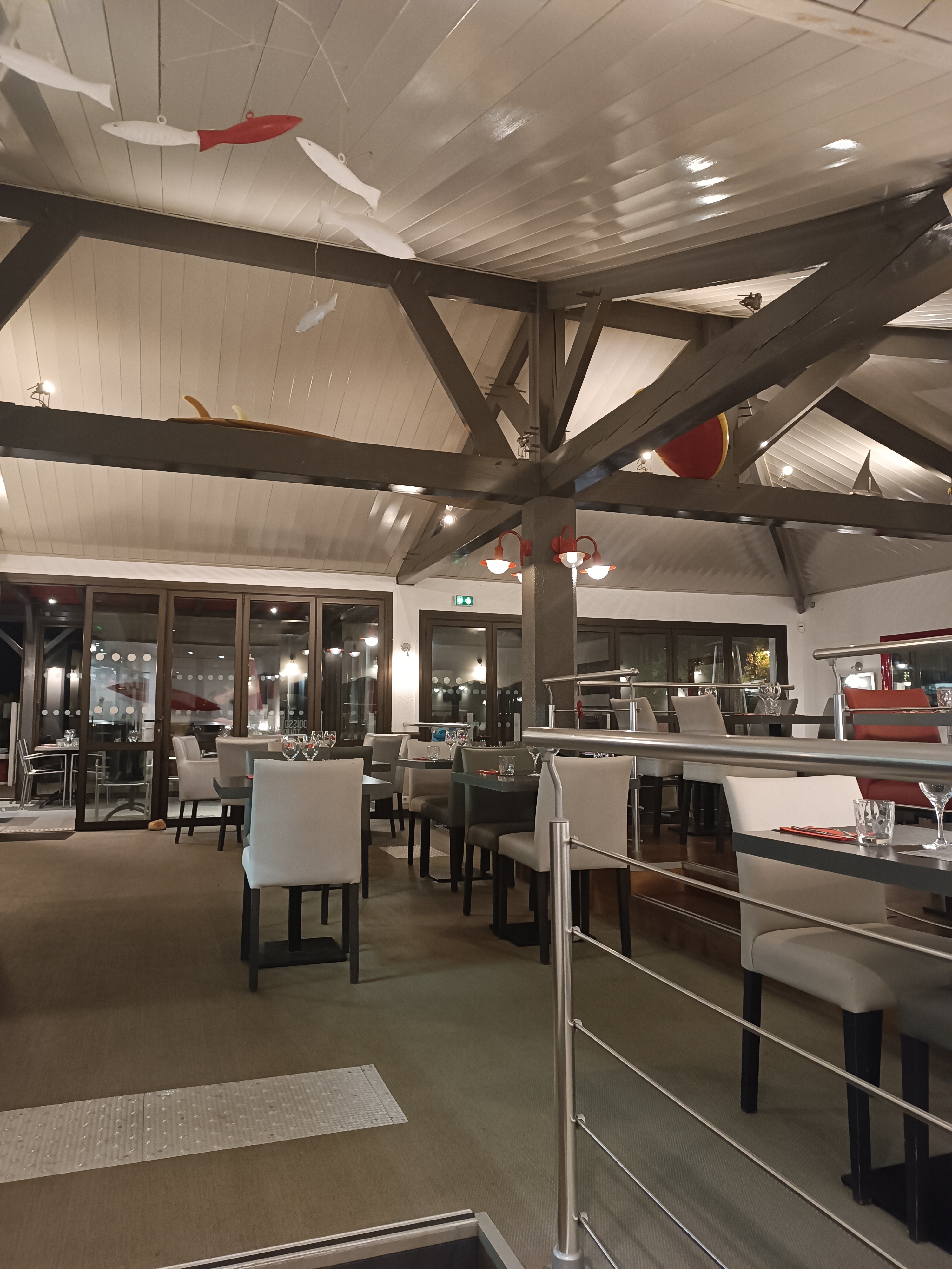 Restaurant plutôt grand qui peut accueillir des groupes. Peut devenir un peu bruyant. Le service est sympathique et à l'écoute. Face à la mer, je suppose qu'au printemps, été, début d'automne la terrasse Peut offrir un cadre très agréable. Nous avons apprécier les entrées mais je mets un bémol sur la pièce de boucher peu tendre. Globalement ce n'est pas un gastro mais un honnêtement restaurants de bord de plage.