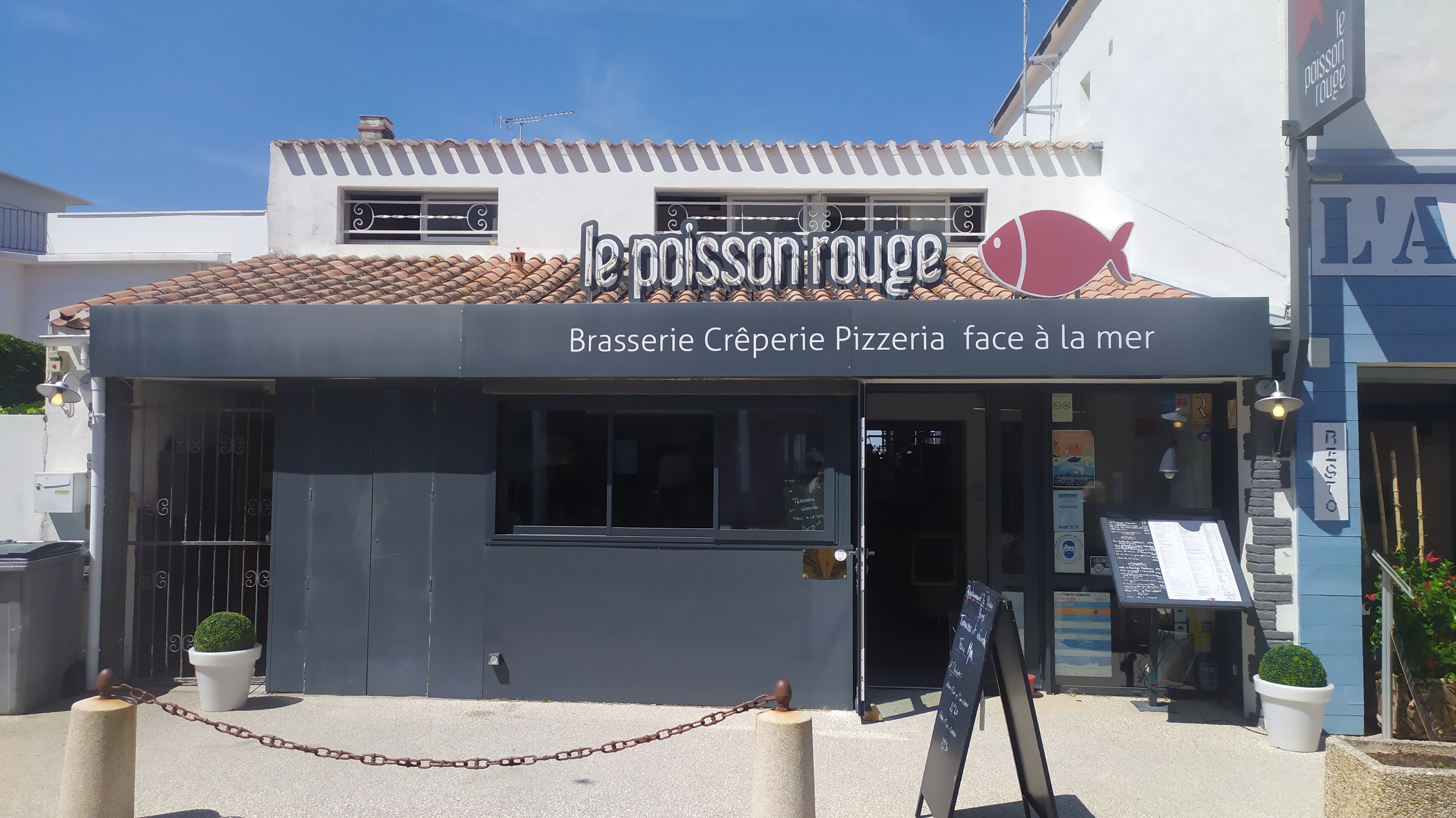 Un vrai restaurant en bord de mer, si si ça existe! Le Poisson Rouge offre une carte gourmande et originale, tout en restant dans un registre traditionnel (Le Poisson Rouge ne tombe pas dans le piège des restaurants à la mode qui proposent des menus souvent proches du régime diététique).. bref, les plats sont excellents et bien présentés. Le service est soigné, souriant, avec toujours une petite phrase ou une petite attention sympa, un vrai plaisir ! Pour couronner le tout, la vue sur mer, directe sur la plage ! Nous y sommes allés 3 fois au cours de notre semaine de vacances, nous avons déjà hâte d'y retourner, à bientôt et merci à toute l'Equipe.