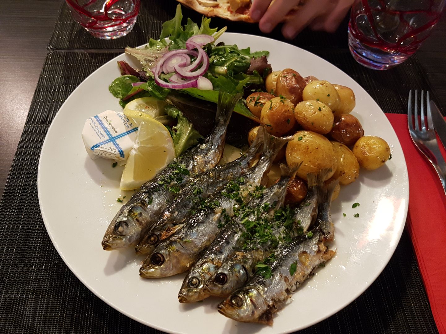 Super restaurant en bord de mer.sardines et autres plats délicieux
