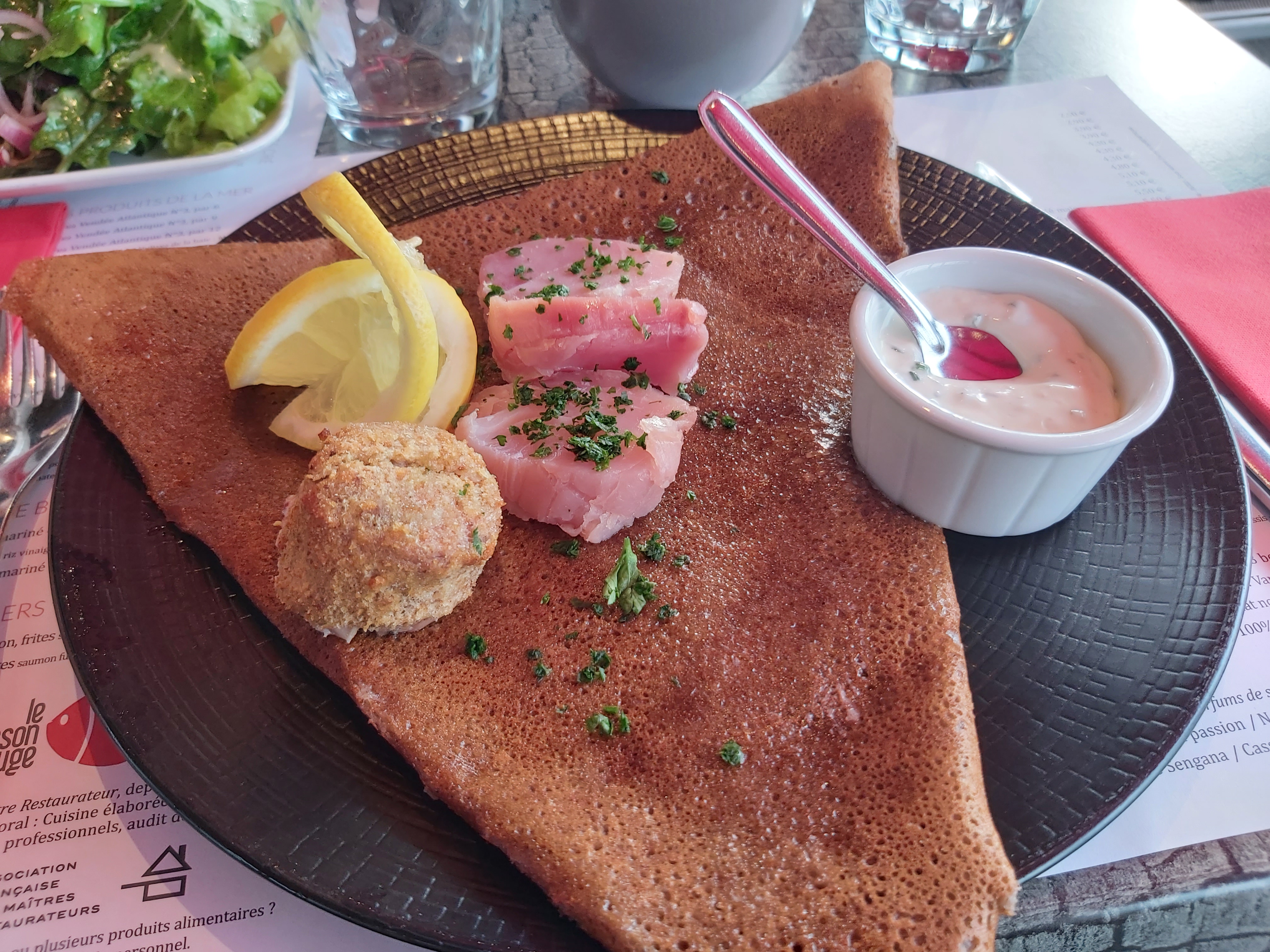 Avions réservé un peu avant l'ouverture, nous avons bien fait car il avait du monde à juste titre. En effet, le cadre est top avec sa vue mer, très lumineux en début de soirée. La galette fjord a bien plu ainsi que les desserts originaux, je pense à la mousse au chocolat-pistache et au tiramisu caramel beurre salé. Quand au service, notre serveuse était super souriante et sympathique. Bon rapport qualité prix. À recommander.
