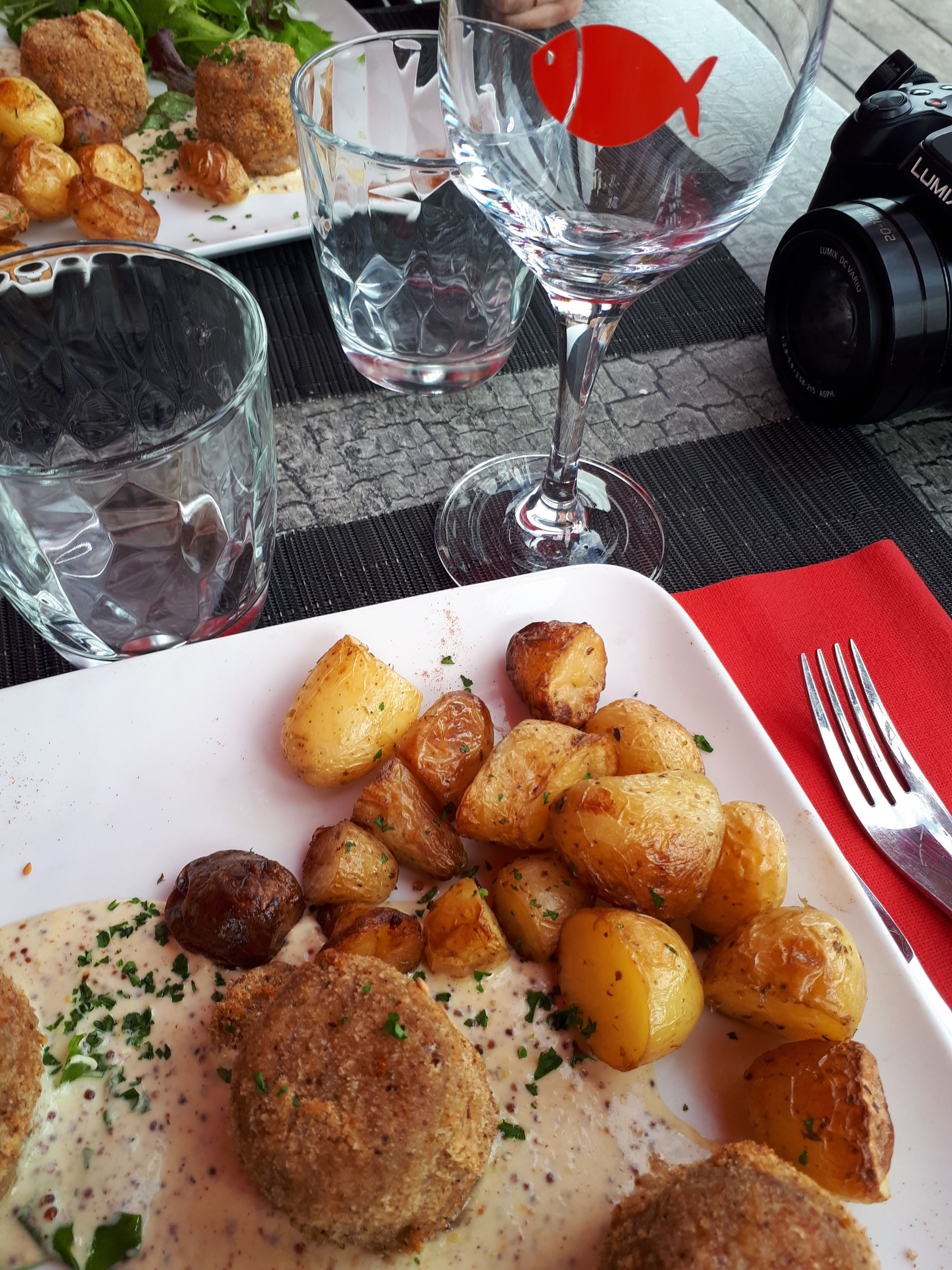 Déçu de la cuisine proposée,poisson de la crié sauce beurre blanc industriel, avec des pommes de terre grenaille réchauffés Restaurant bruyant,