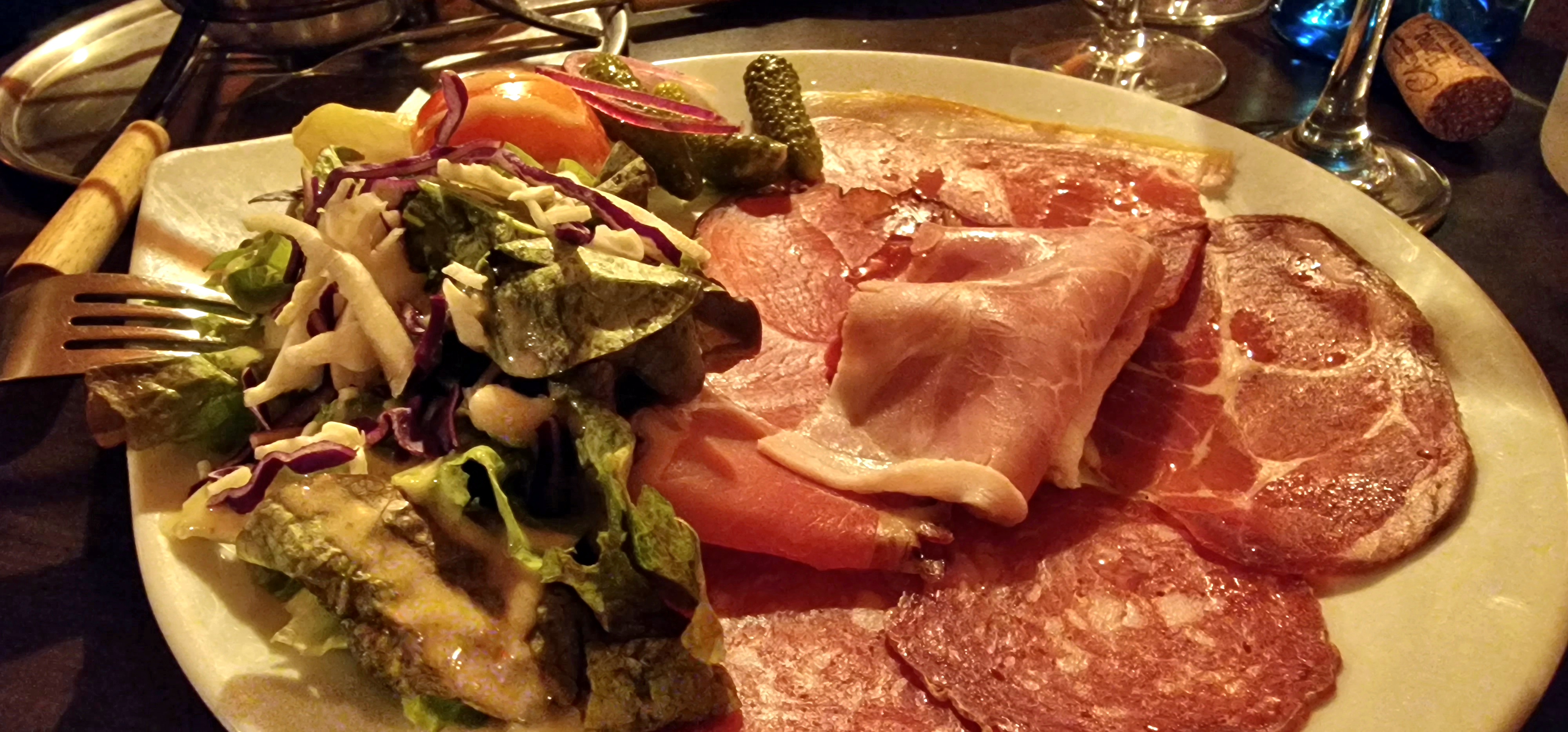 Petit résto , dans un cadre montagnard, où nous avons mangé une fondue, servie avec des charcuteries qui n'etaient pas de bonne qualité. (Une demi-tranche de jambon blanc, une fine tranche de jambon cru, une tranche de saucisson et une tranche de coppa) Service normal mais sans plus .
