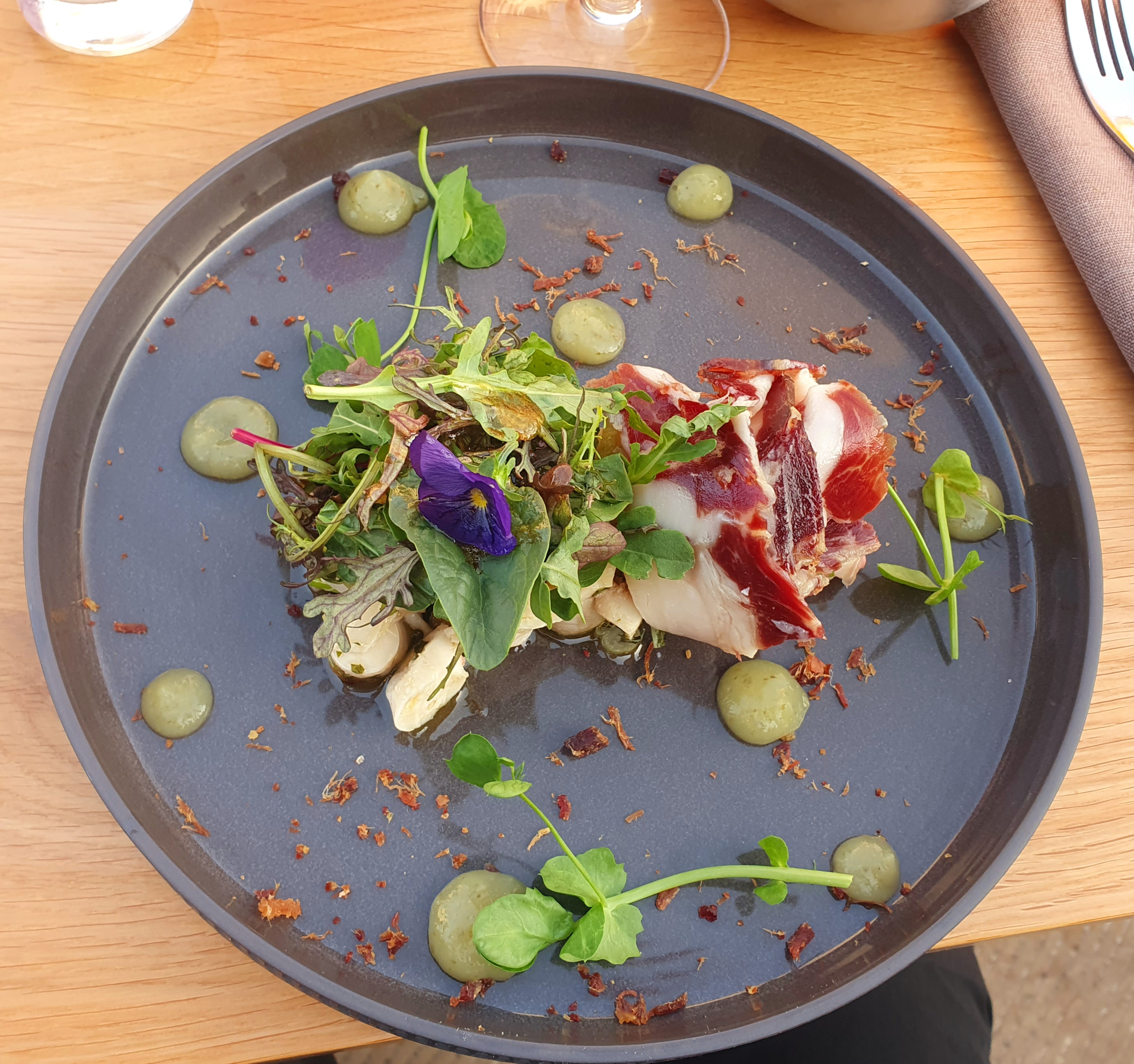 Excellente cuisine raffinée, préparée à partir d'ingrédients majoritairement locaux. Des sauces incroyables, une bonne ambiance en plein air, les repas avaient des portions parfaites. Le service d'attente était également incroyable. Grand choix d'accords vins. J'ai vraiment apprécié et je reviendrai certainement.