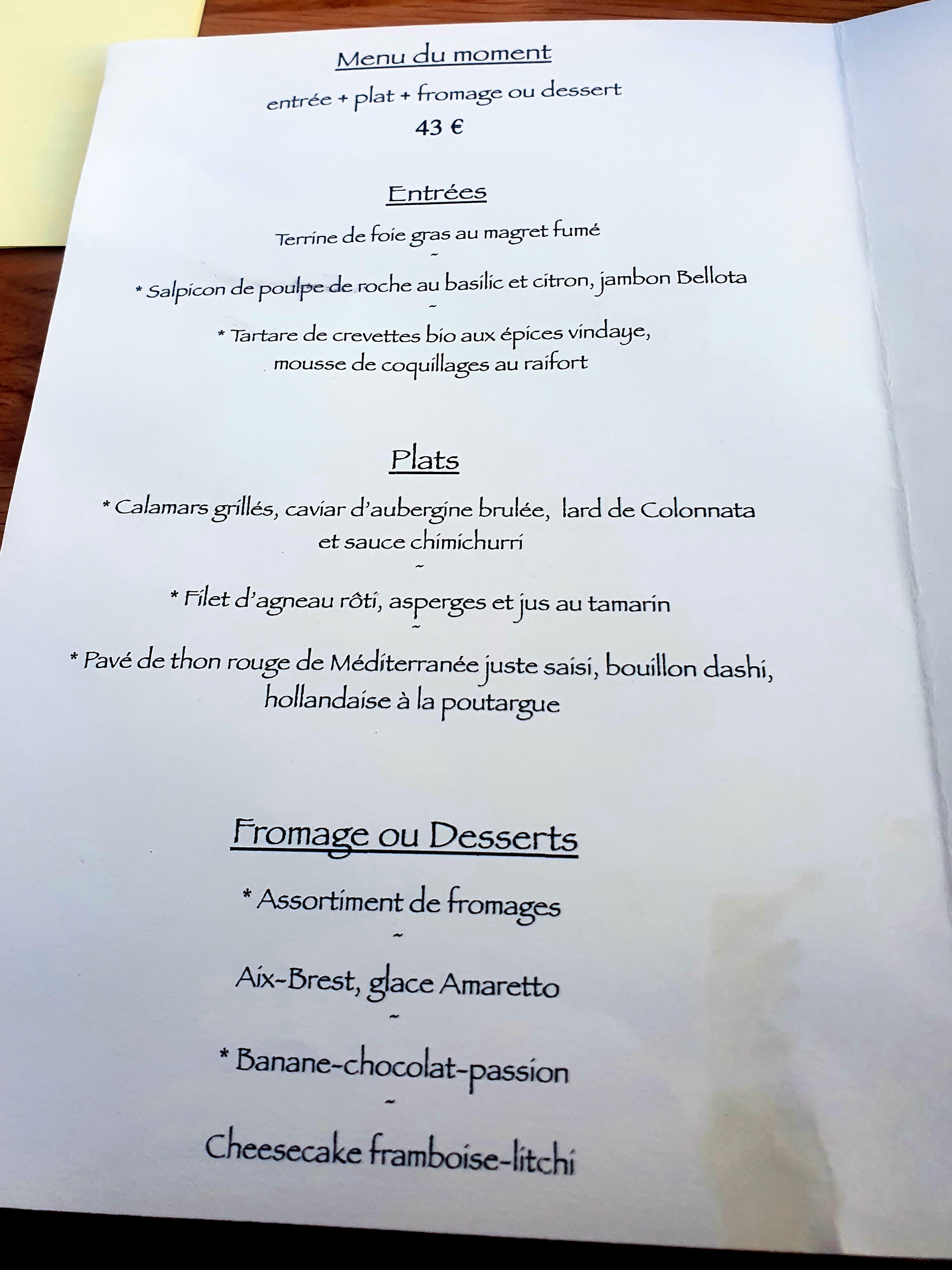 L'expérience était parfaite. Ma fiancée a choisi le menu préfixe et j'ai participé à la sélection du chef en 5 plats. Nos deux repas étaient 5 étoiles !!! Le service était également excellent, même s'il ne parlait pas un français approximatif, l'hôte était très patient et parlait en fait très bien anglais lorsque cela était possible. Je recommande ce restaurant car je pense que c'est l'un des meilleurs d'Aix-en-Provence !