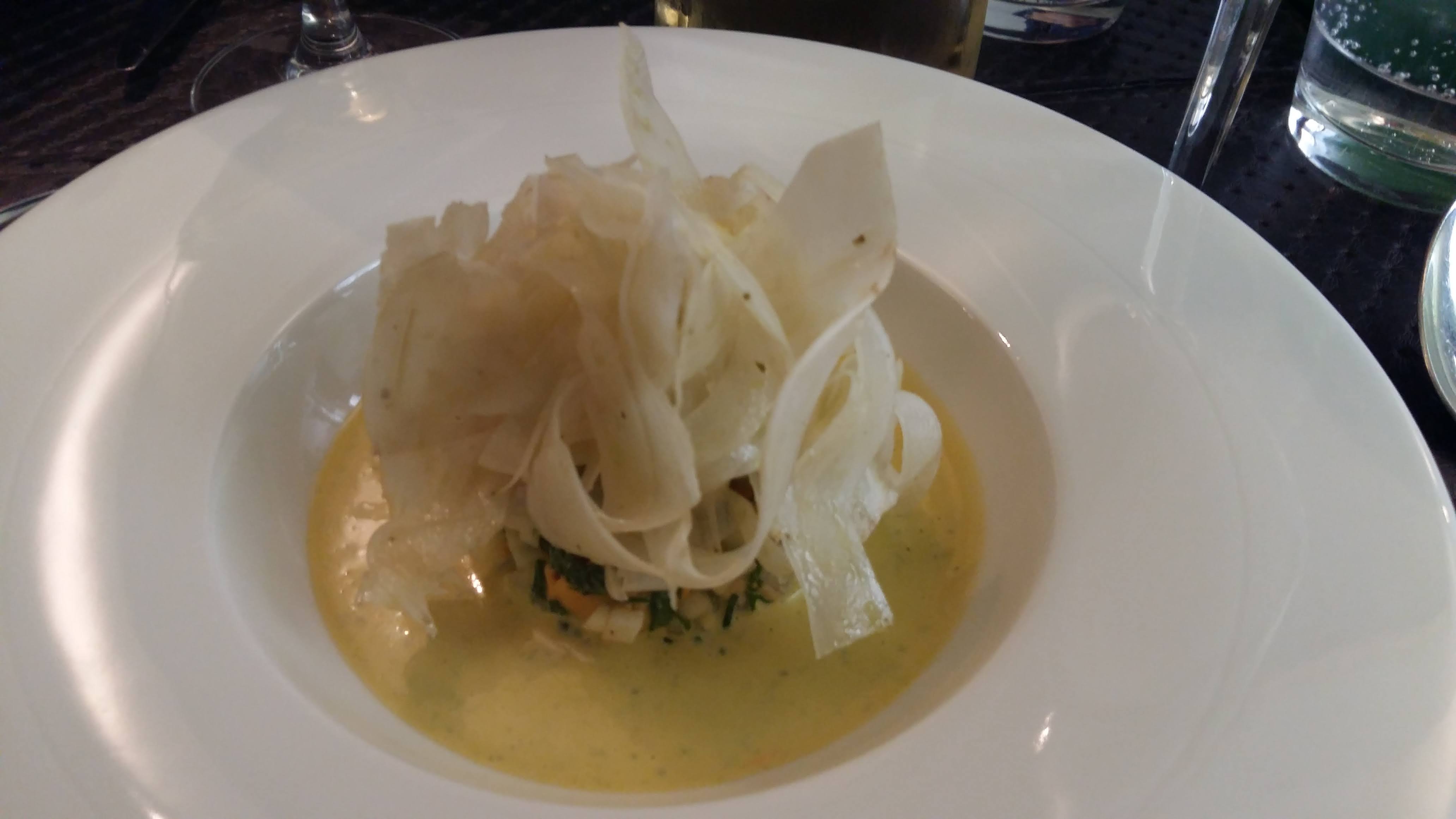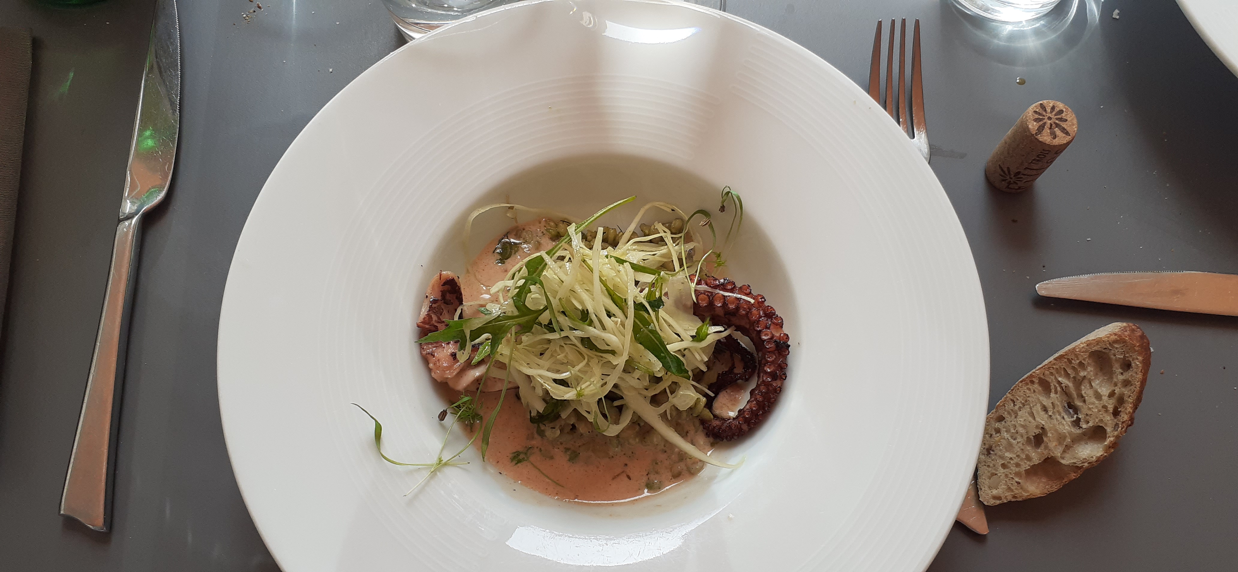 Super restau: le service du midi est très sympathique et efficace, parfait pour une pause déjeuner d'une heure. Les plats sont raffinés, et le chef est très sympa: il est venu nous commenter les plats en salle, et il a l'air vraiment passionné par ses produits et sa cuisine!