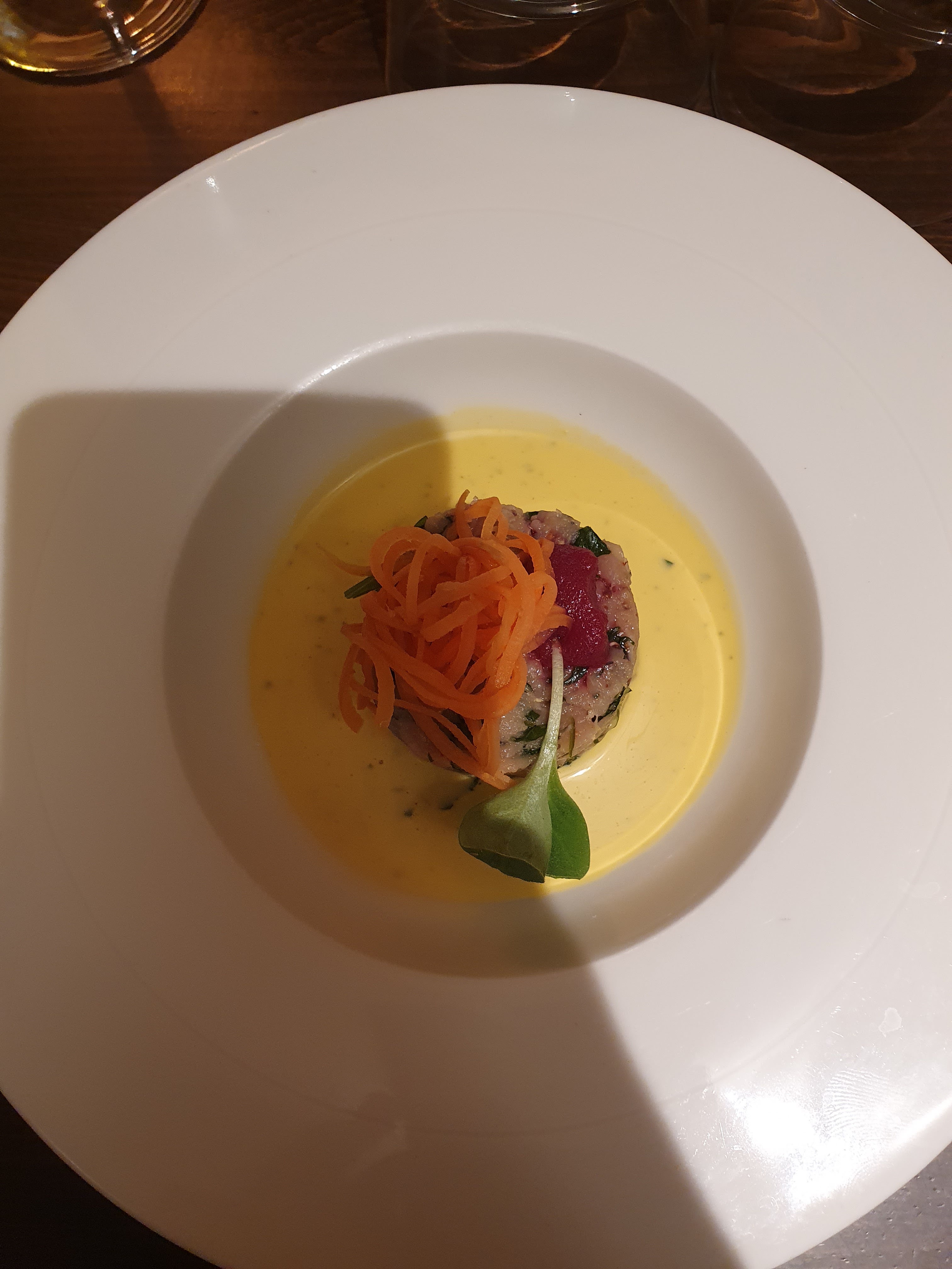 Belle découverte que ce très bon restaurant dans lequel on ressent la passion dans les plats de l'entrée au dessert avec une mention spéciale au serveur très professionnel et disponible. Je recommande fortement.