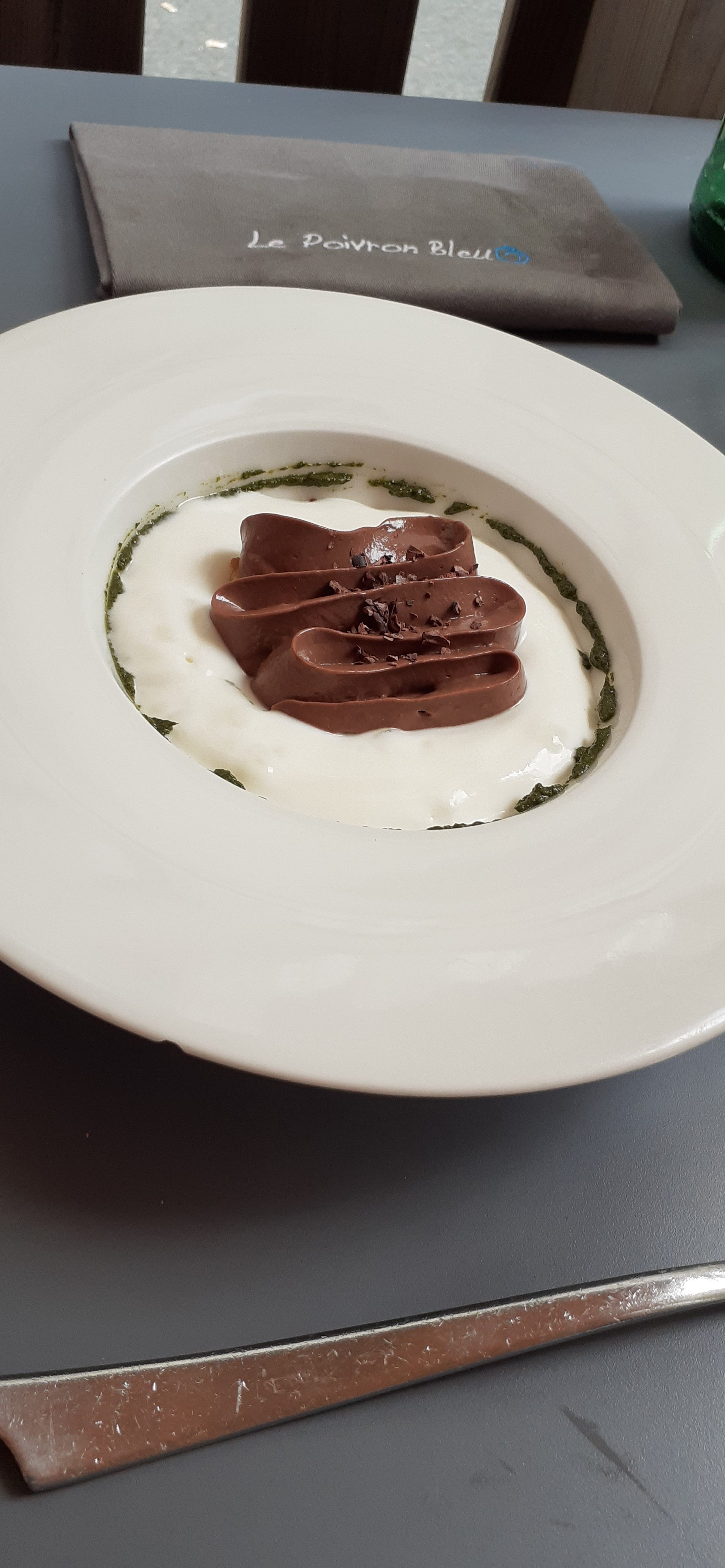 Un excellent moment passé au Poivron bleu ! Un menu de qualité avec de superbes saveurs. Le dessert crémeux de caramel avec pesto sucré et lait fermenté est venu clôturer a la perfection le repas. J'y reviendrai avec plaisir.